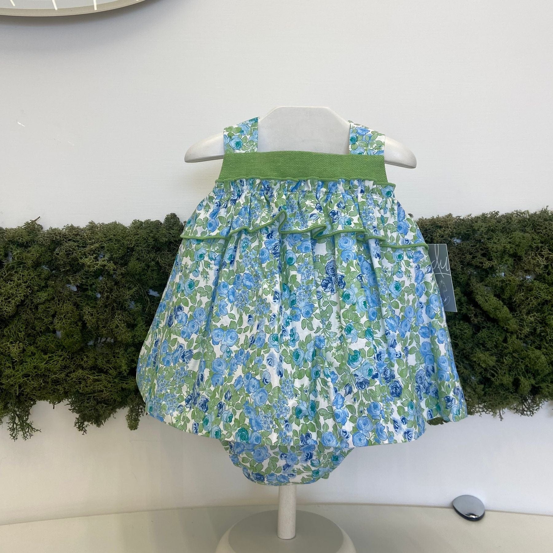 Completo con culotte con fantasia a fiori verde/azzurra e blu.