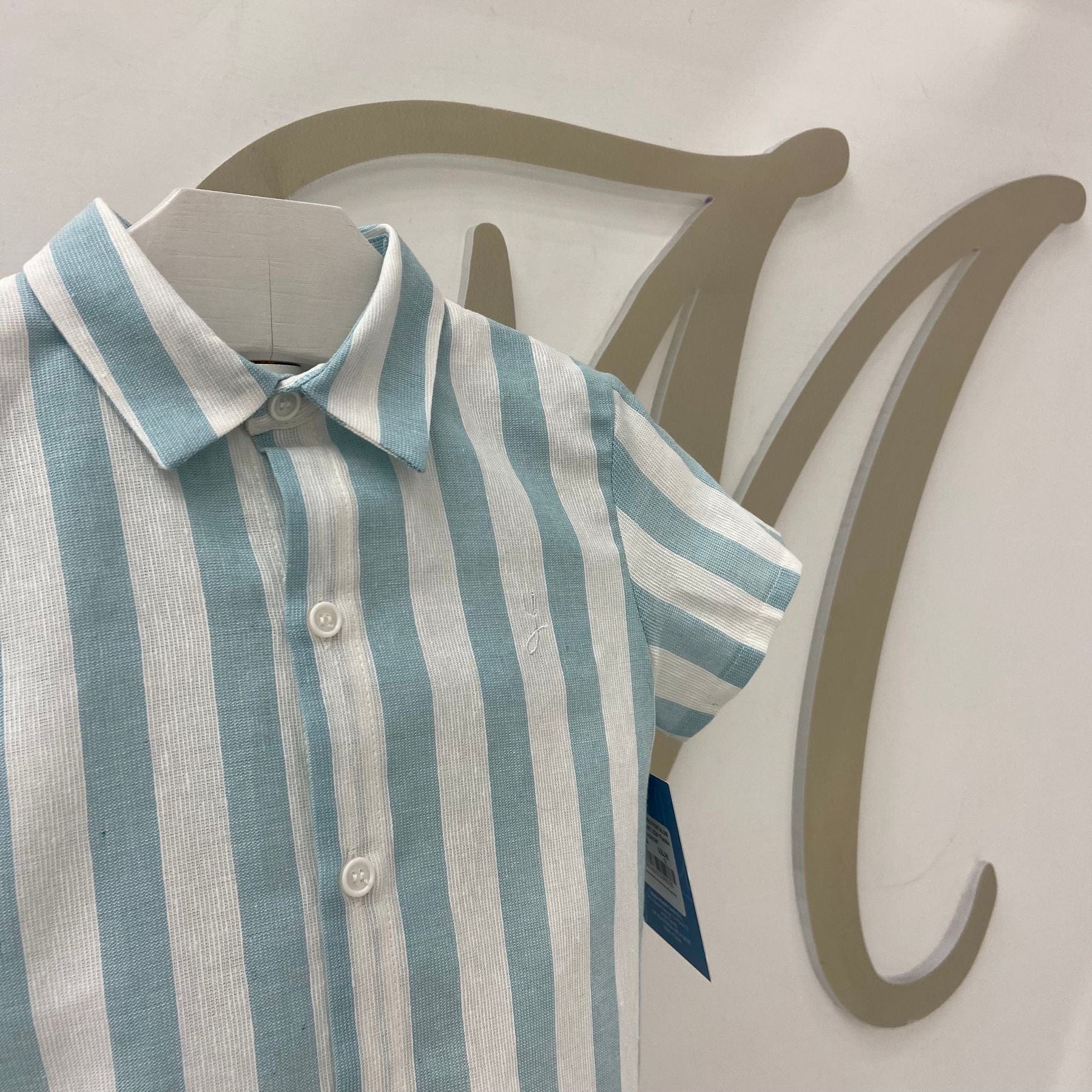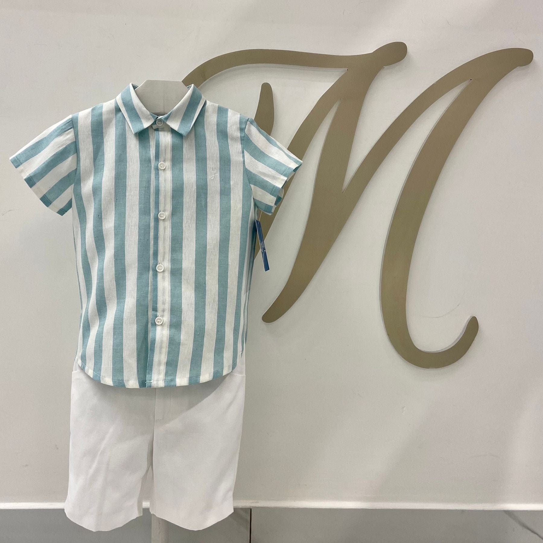 Completo due pezzi con camicia a righe e pantaloncino.