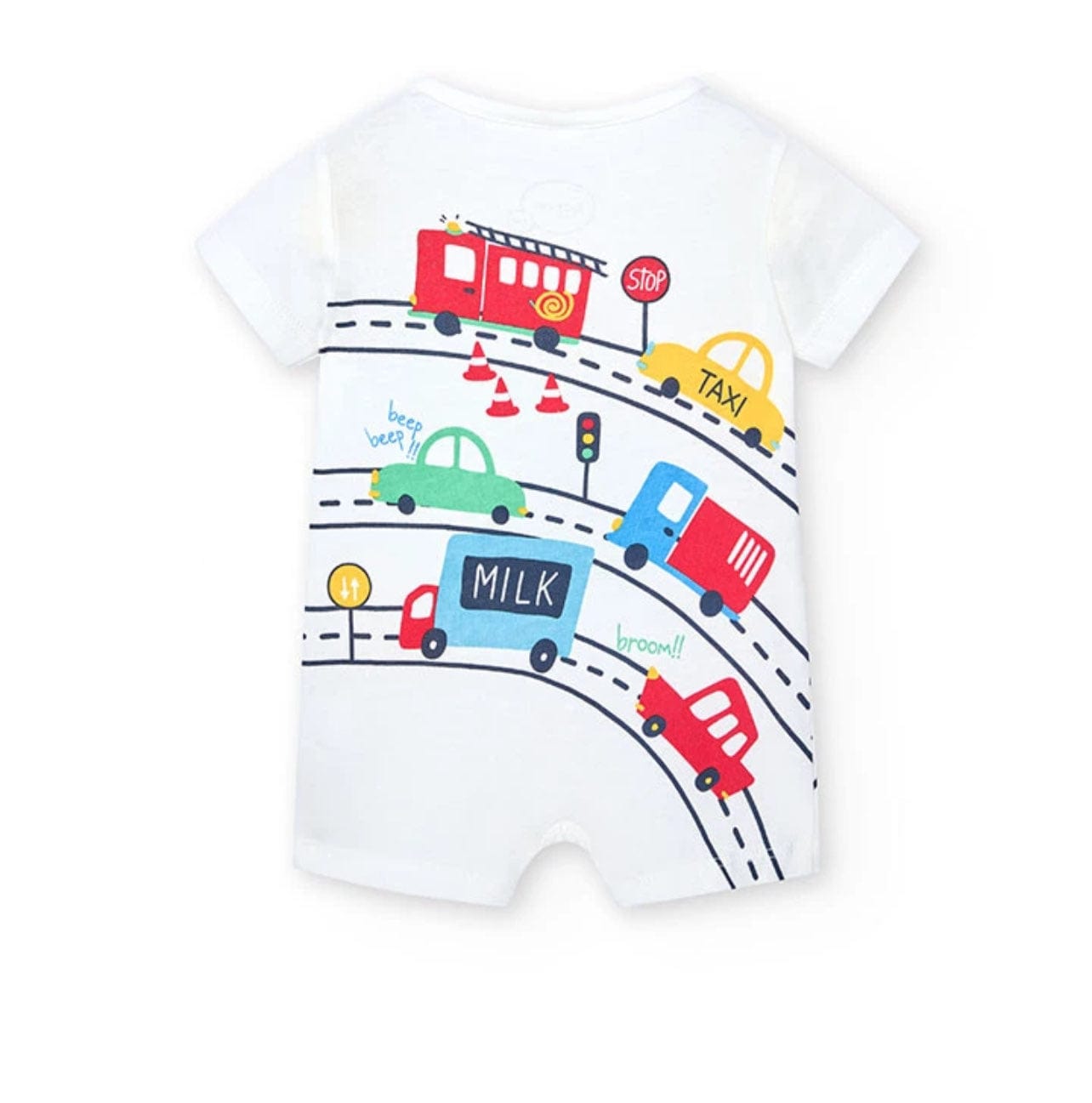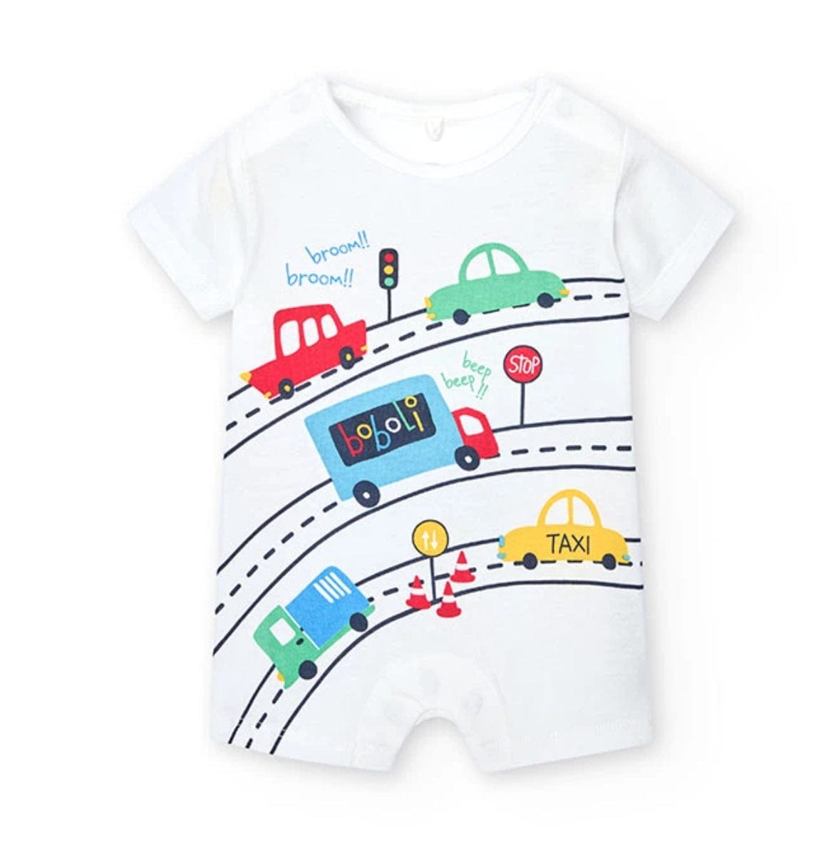 Questo è un pelele corto a punto per neonati maschi. È perfetto per l'estate grazie al suo tessuto leggero e traspirante. Il colore principale è il bianco, che lo rende versatile e facile da abbinare. Il design presenta un simpatico stampato, aggiungendo un tocco di allegria. Il collo rotondo e le maniche corte lo rendono comodo per il tuo piccolo, mentre il tessuto a punto garantisce la durata. Questo pelele è l'ideale per mantenere il tuo bambino fresco e alla moda durante i mesi più caldi.