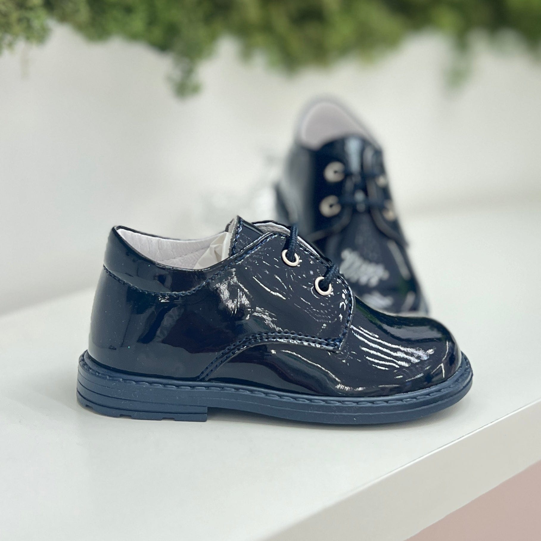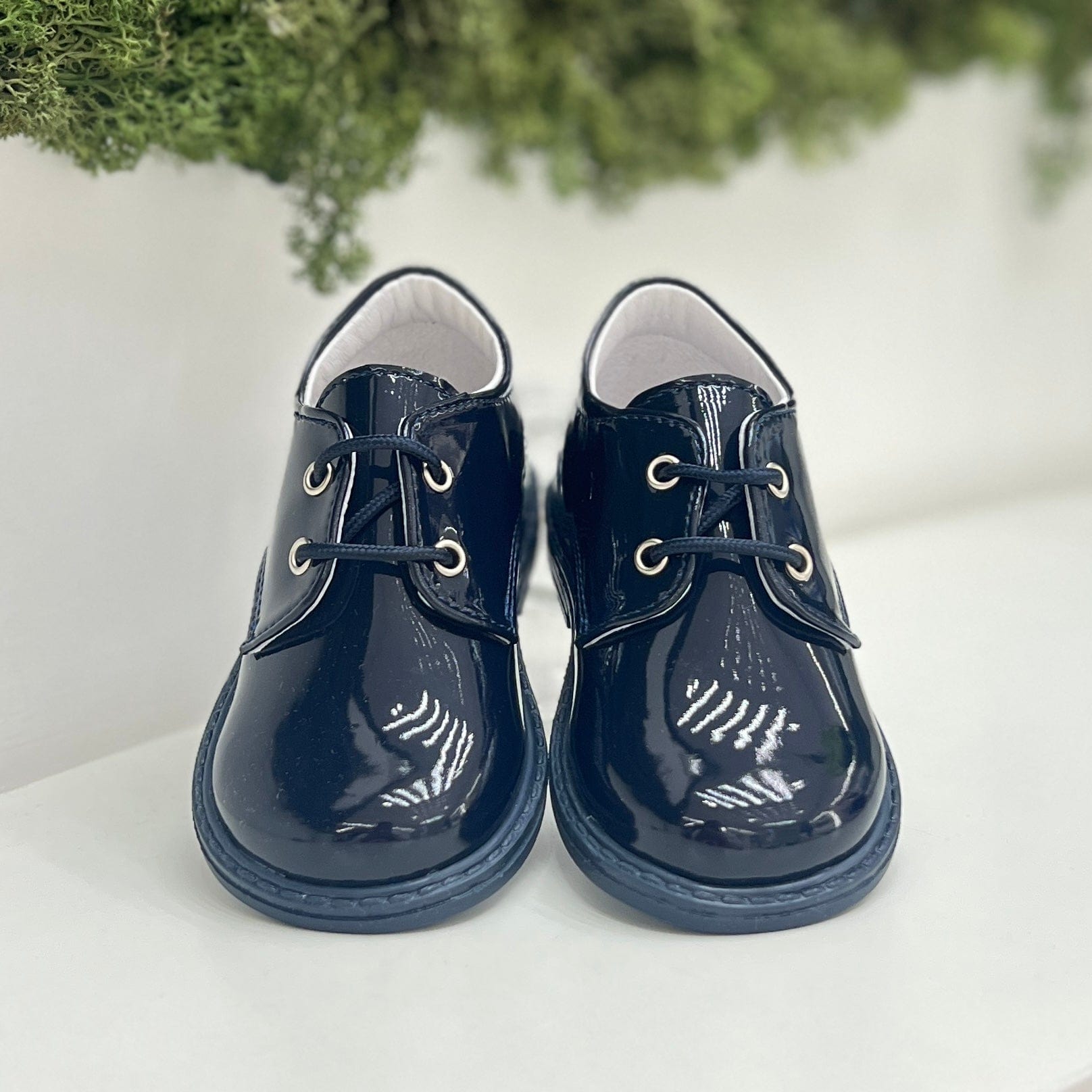 Scarpa elegante stringata in vernice lucida con suola antiscivolo.