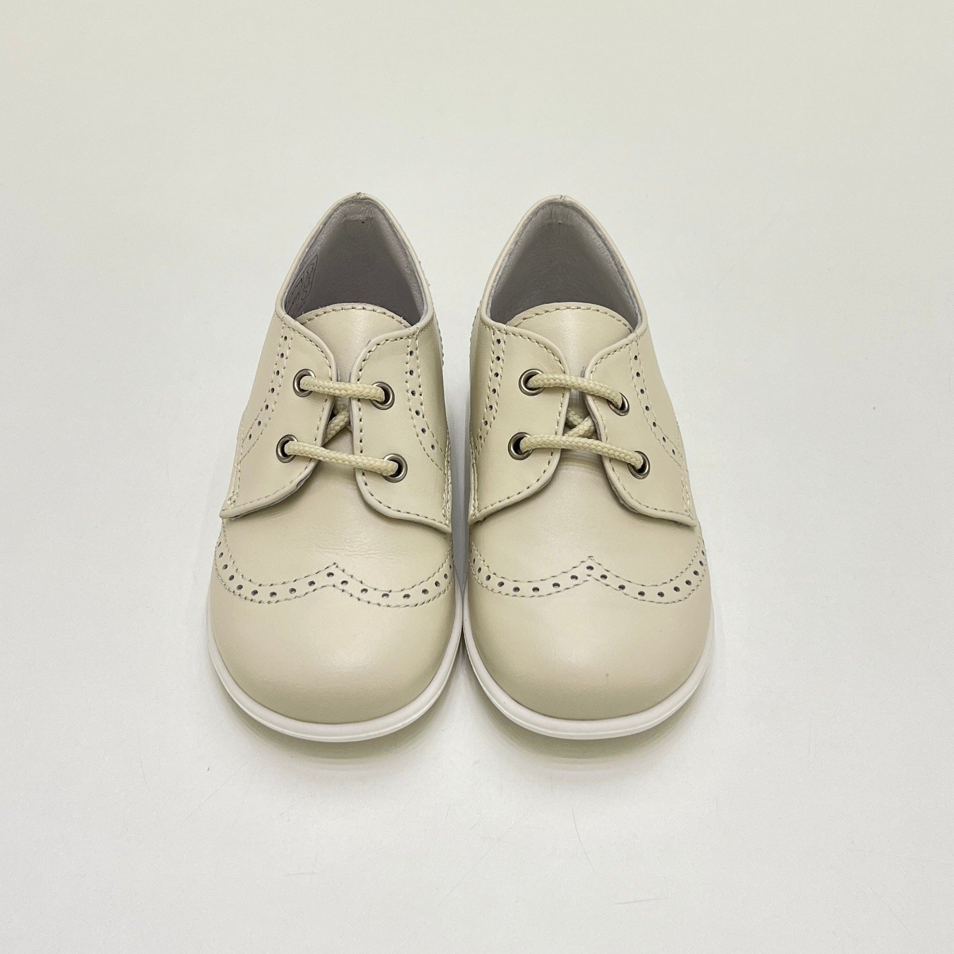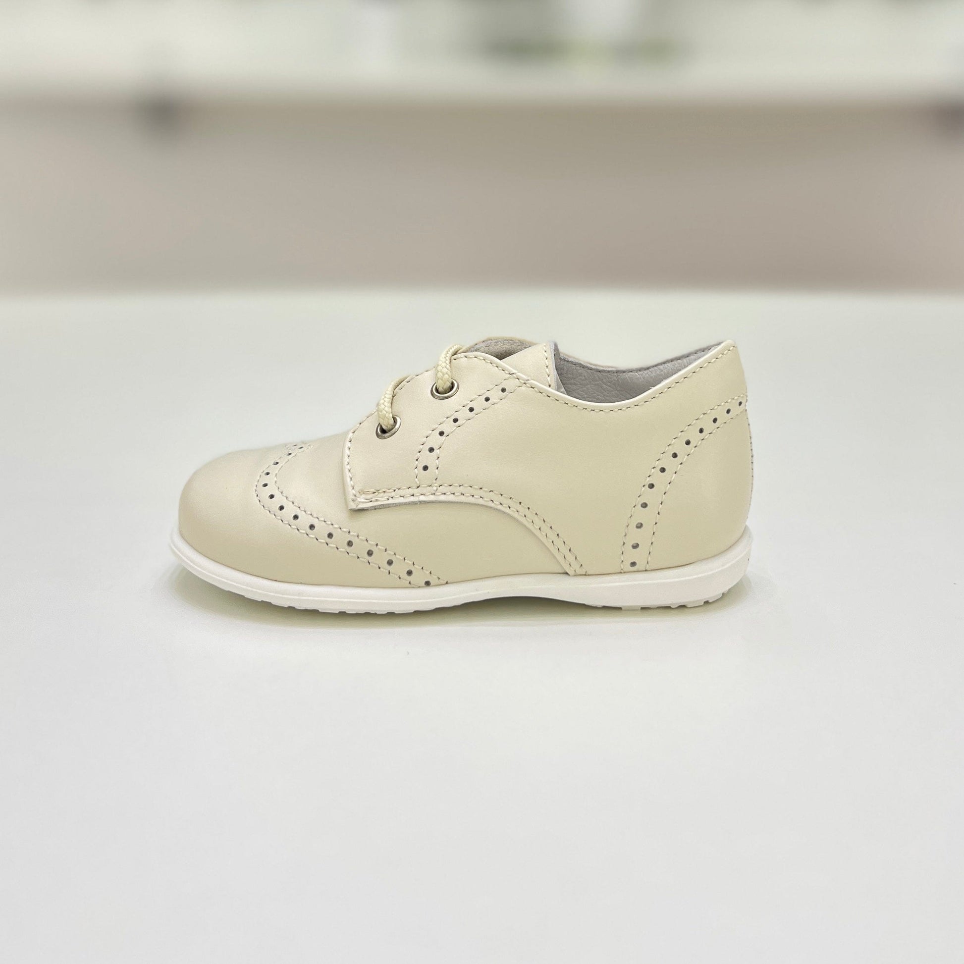 Scarpa elegante bimbo stringata, realizzata in pelle con delicati trafori decorativi, plantare anatomico e suola in gomma antiscivolo. Un modello raffinato e comodo, ideale per completare con stile ogni look formale.