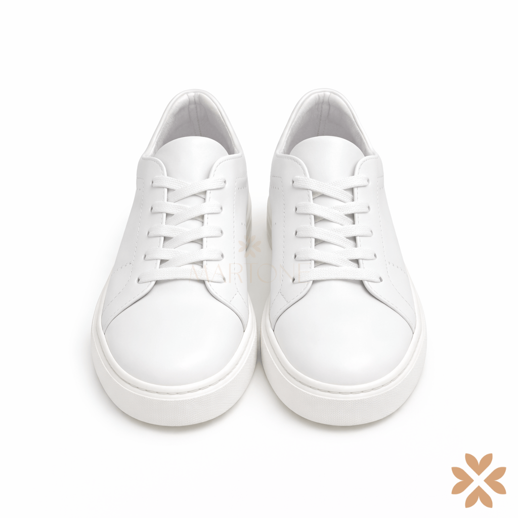 Sneakers bimbo dal design pulito e contemporaneo, caratterizzate da linea minimal e talloncino bianco . Plantare anatomico e suola antiscivolo garantiscono comfort e stabilità per l’uso quotidiano. Modello versatile, ideale per completare look casual e smart casual con stile.