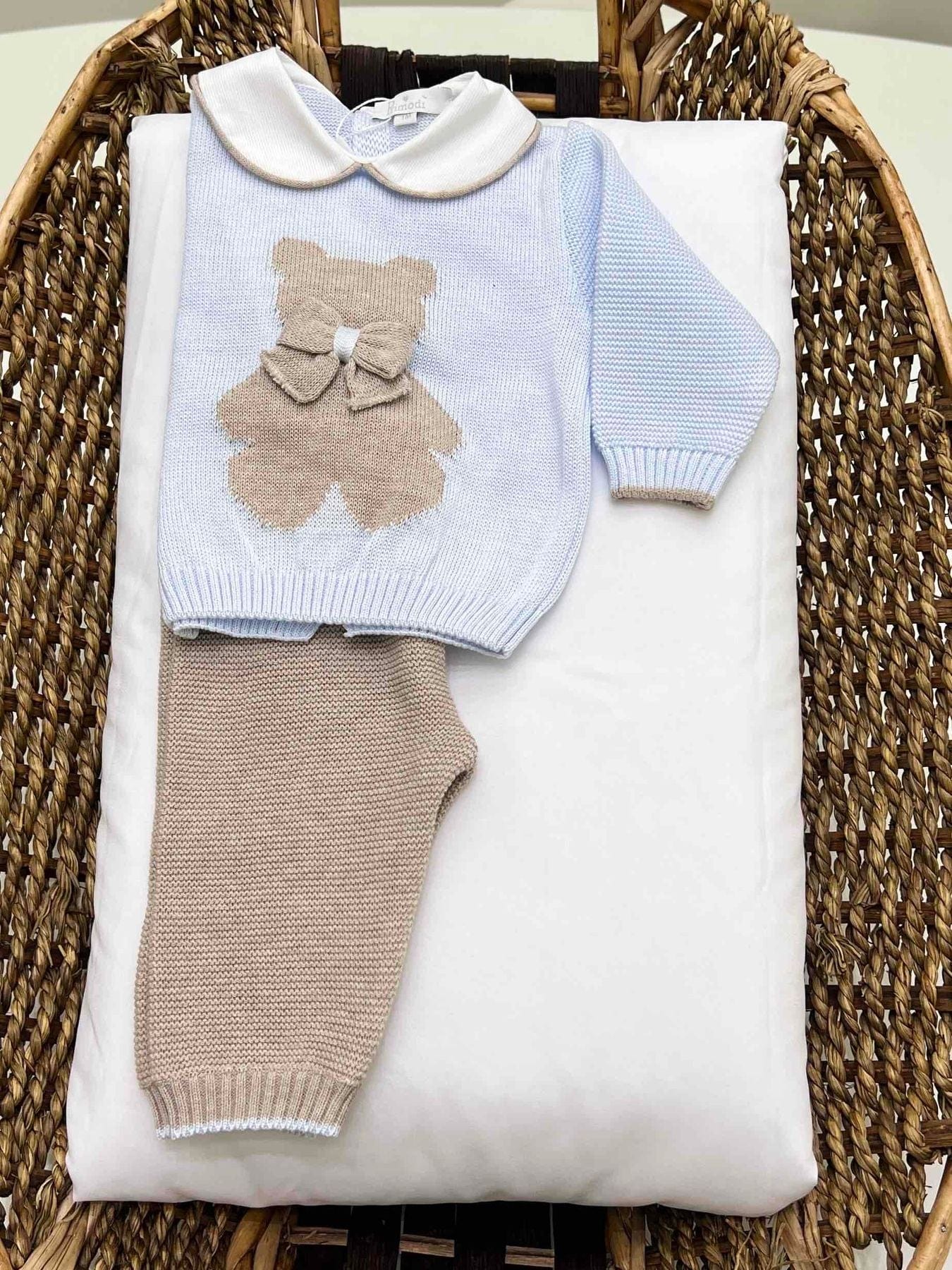 Completo neonato due pezzi bicolore in filo di cotone.
