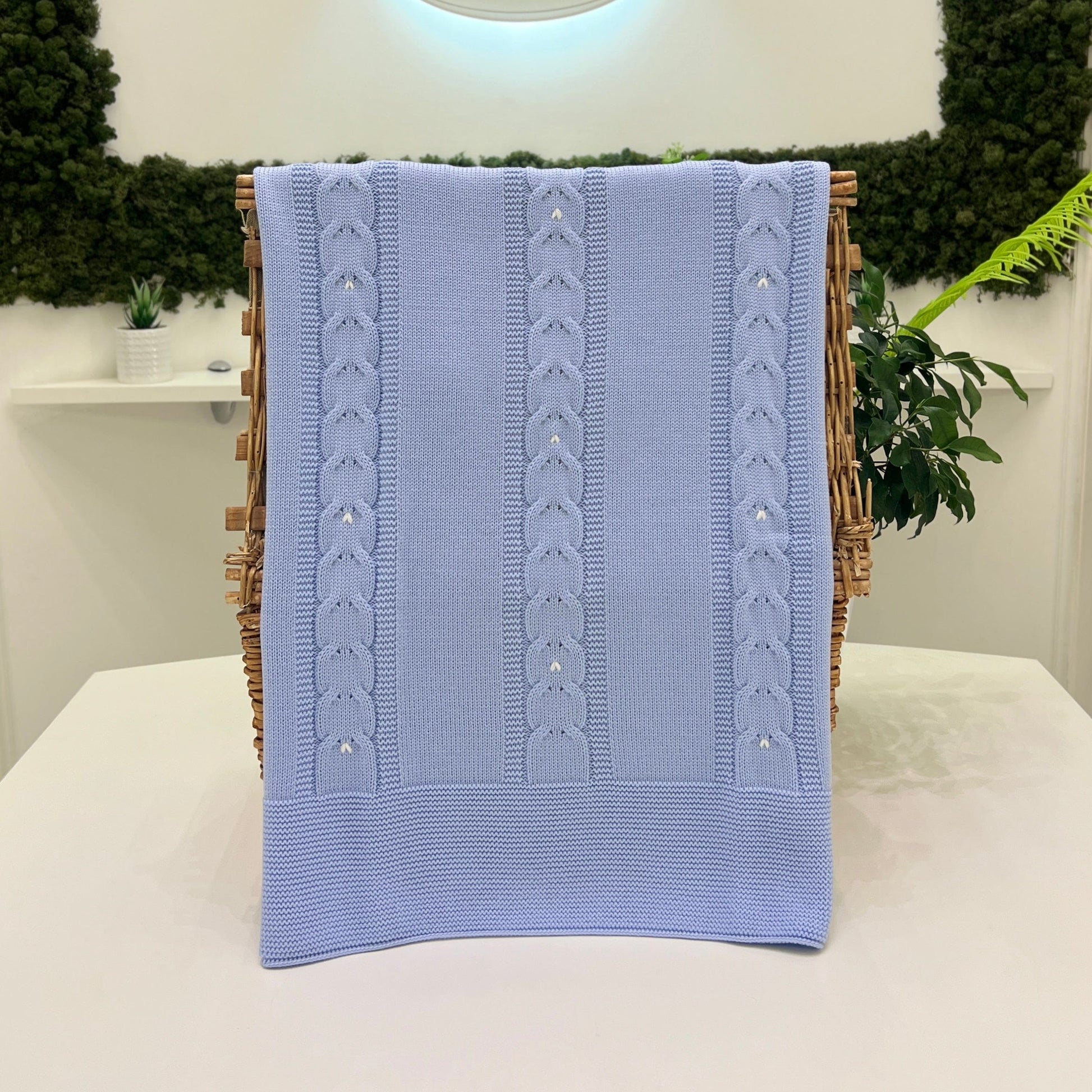Copertina sfoderata in pura lana con lavorazione in maglia a trecce.