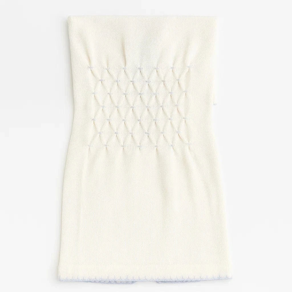 Coperta per neonato in pura lana color latte, lavorata all’uncinetto in punto smock. Rifinita con delicati nodini celesti a contrasto, è soffice, calda e perfetta per avvolgere il tuo bimbo con eleganza.