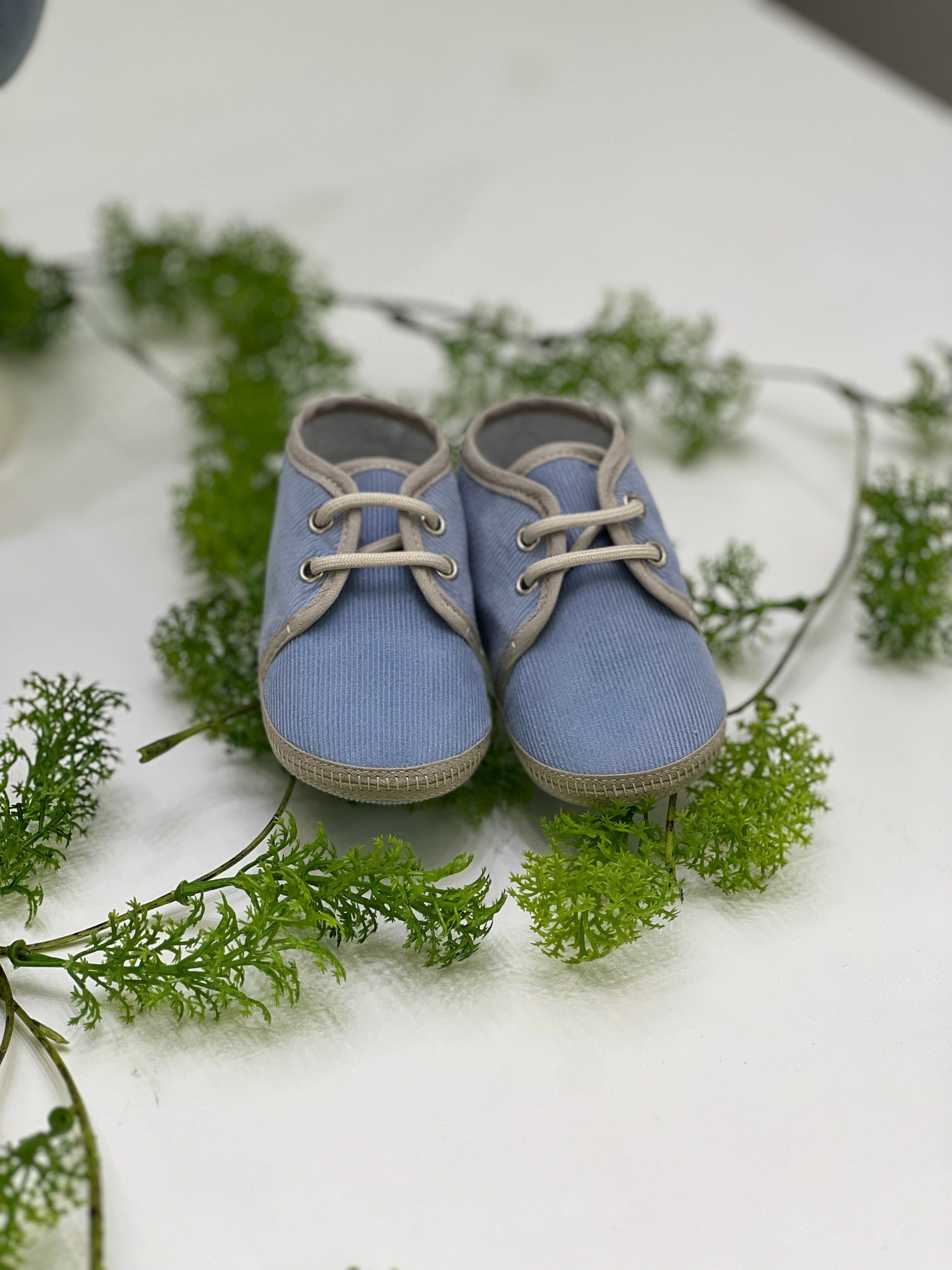 Scarpina elegante stringata da culla in velluto millerighe.