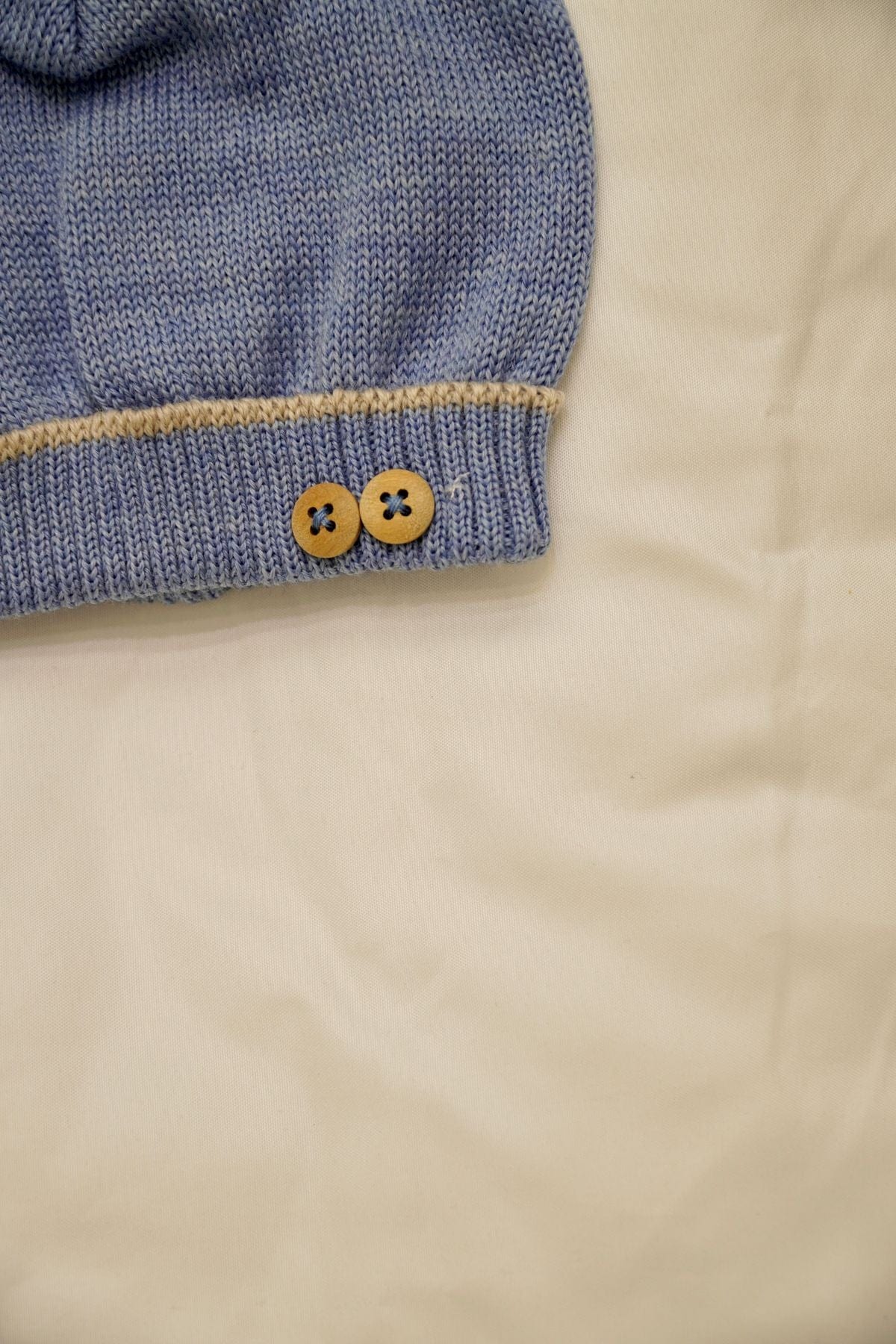Cappello in lana color cielo con richiami in beige
