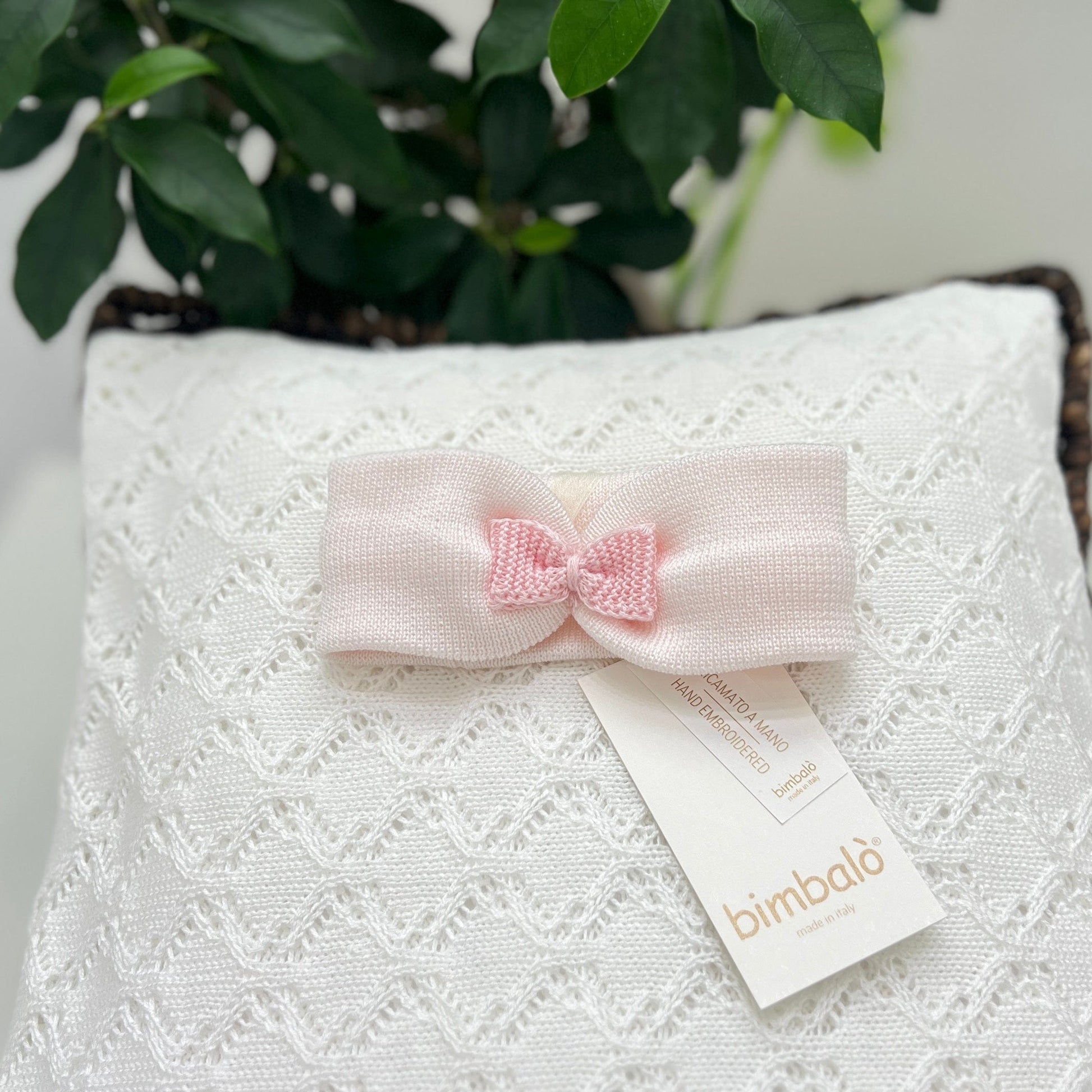 Fascetta in filo di cotone per neonata con fiocchetto.