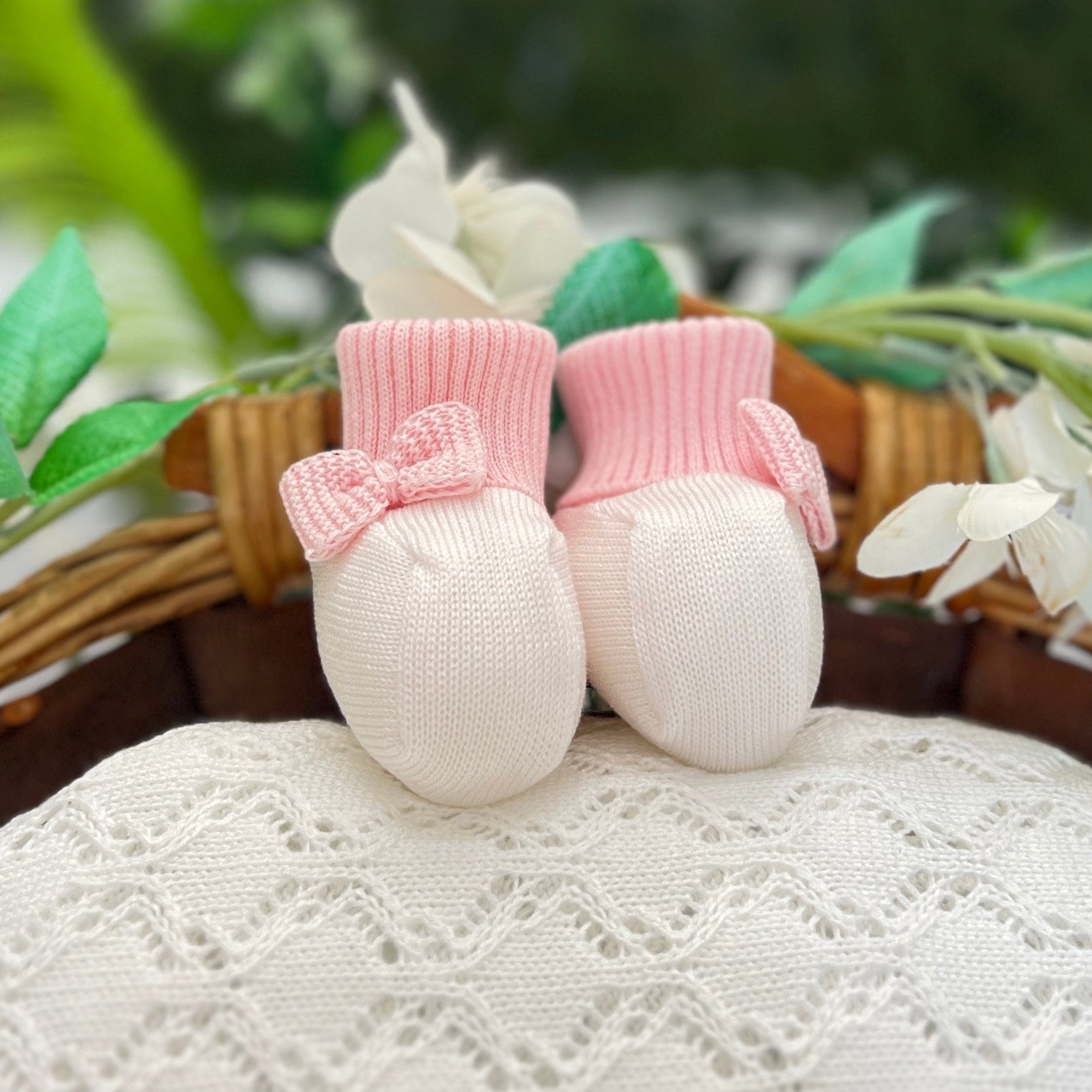 Babbucce in filo di cotone, con dettaglio in tulle. Un accessorio elegante e comodo, perfetto per completare il look della tua piccola con un tocco di stile.