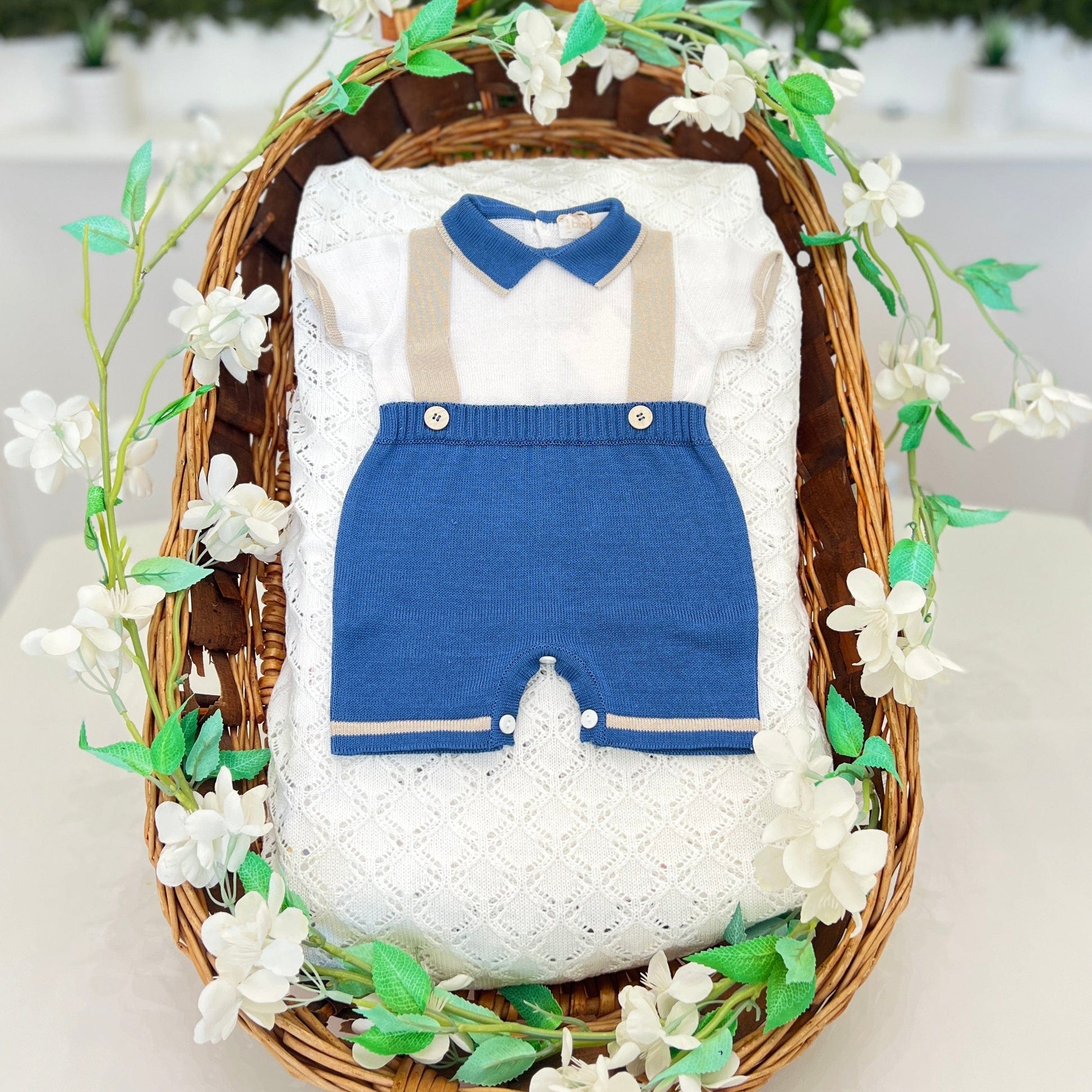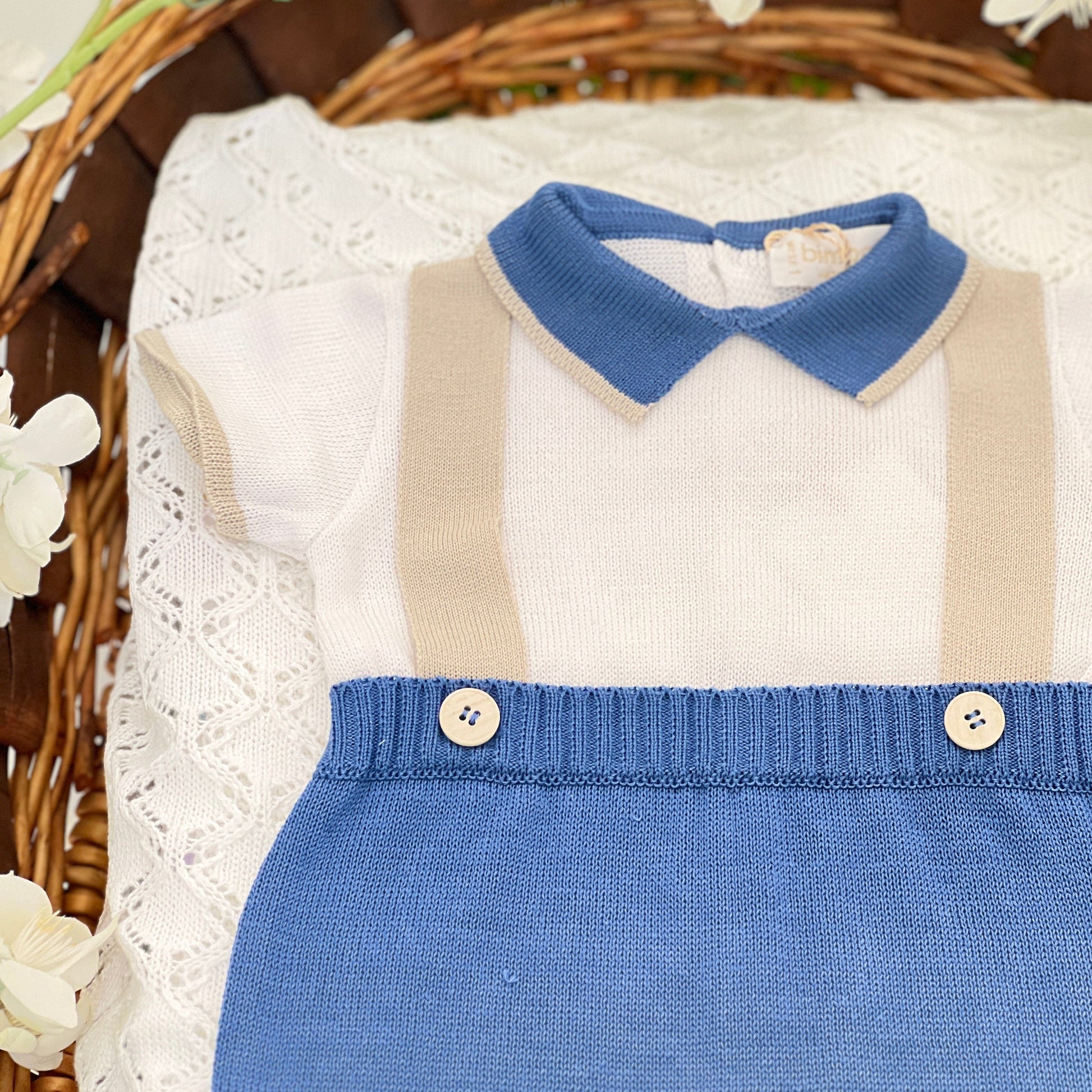 Pagliaccetto in filo di cotone per neonato, con bretelle regolabili. Un capo fresco e confortevole, perfetto per le giornate più calde, che offre una vestibilità pratica senza rinunciare a stile e eleganza.