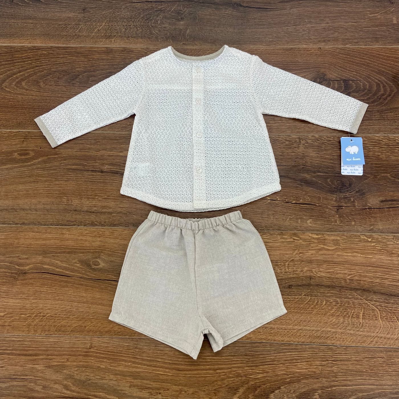 Camicia in pizzo san gallo e pantaloncino il lino.