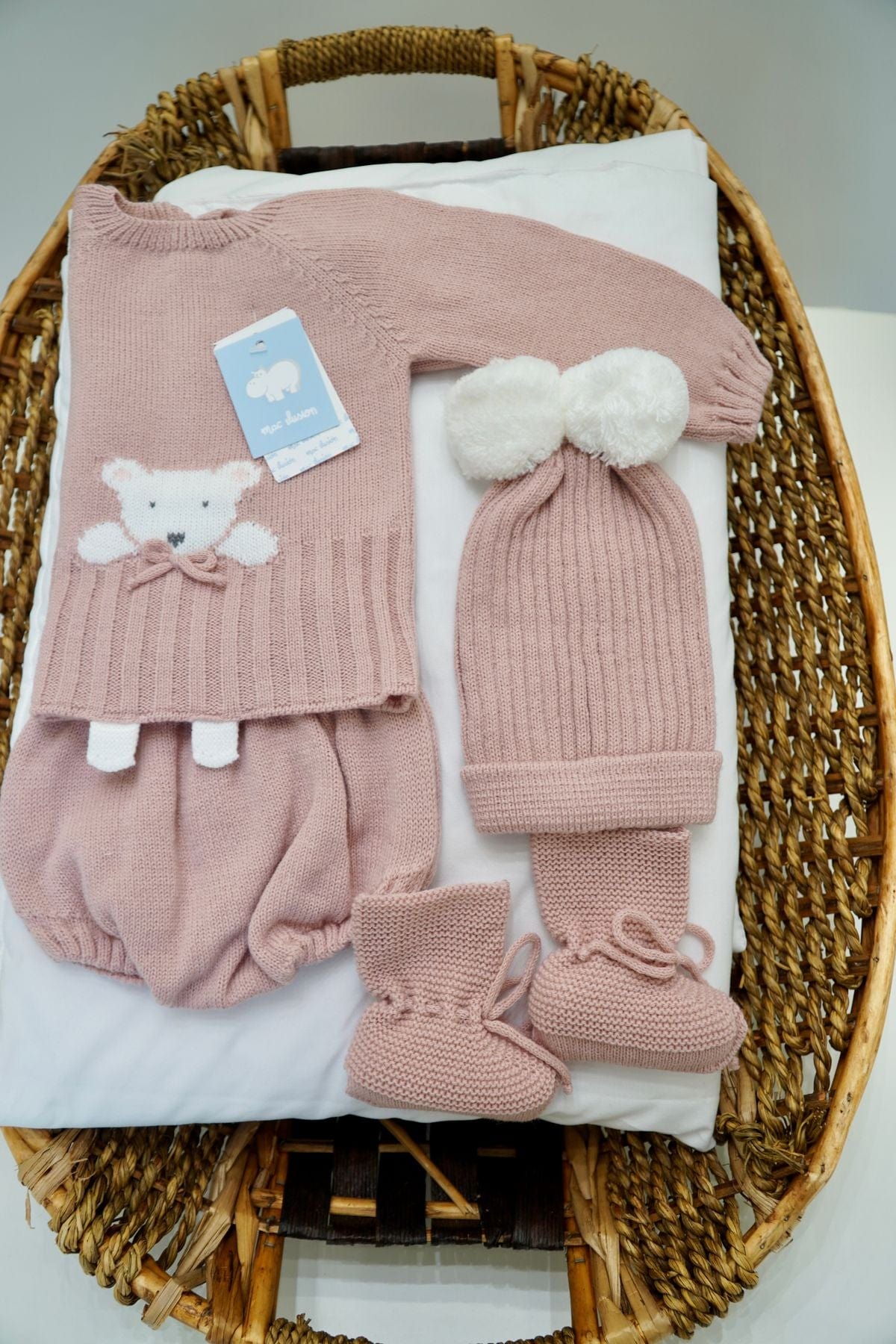 completo quattro pezzi neonata con cappello e scarpette nascita