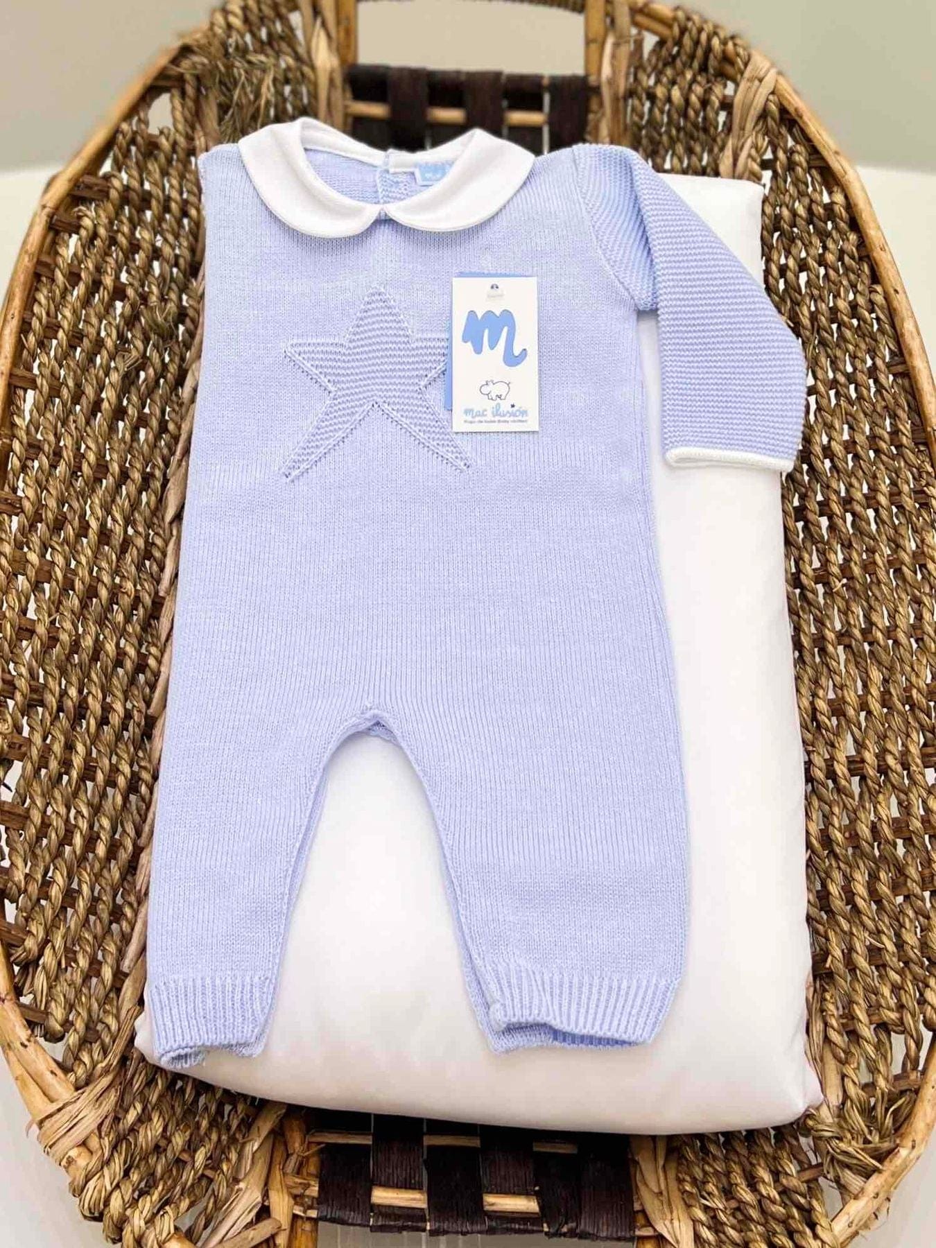 Tutina intera neonato in filo di cotone con colletto tondo.