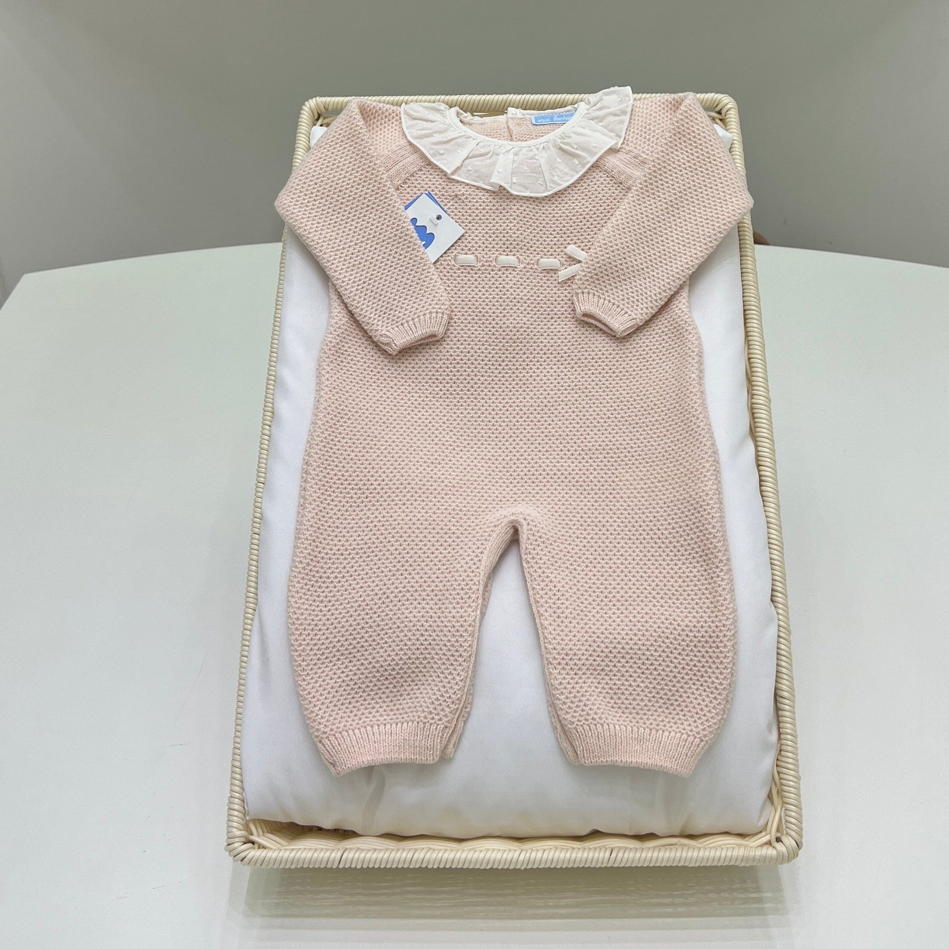 Tutina in misto lana, colletto con rouches e passanastro in velluto.