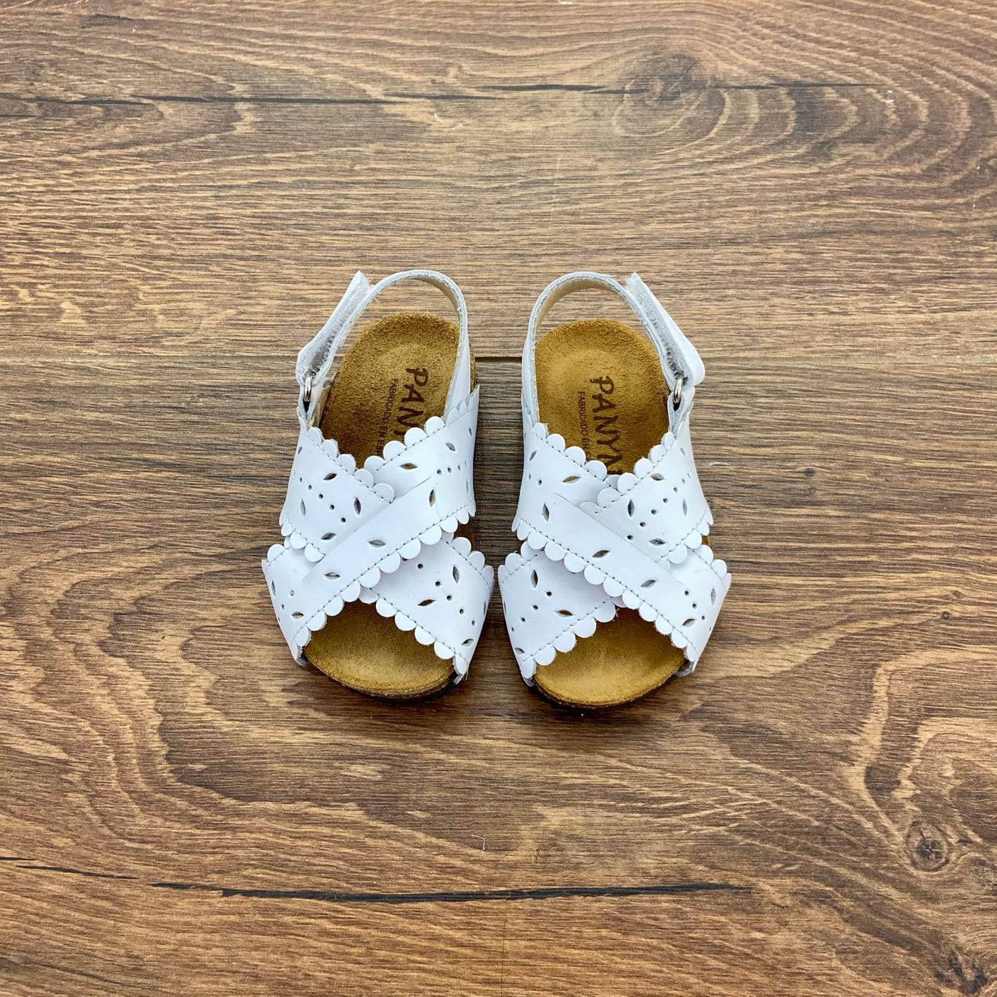 Sandoletto incrociato con plantare in sughero e cinturino in pelle.
