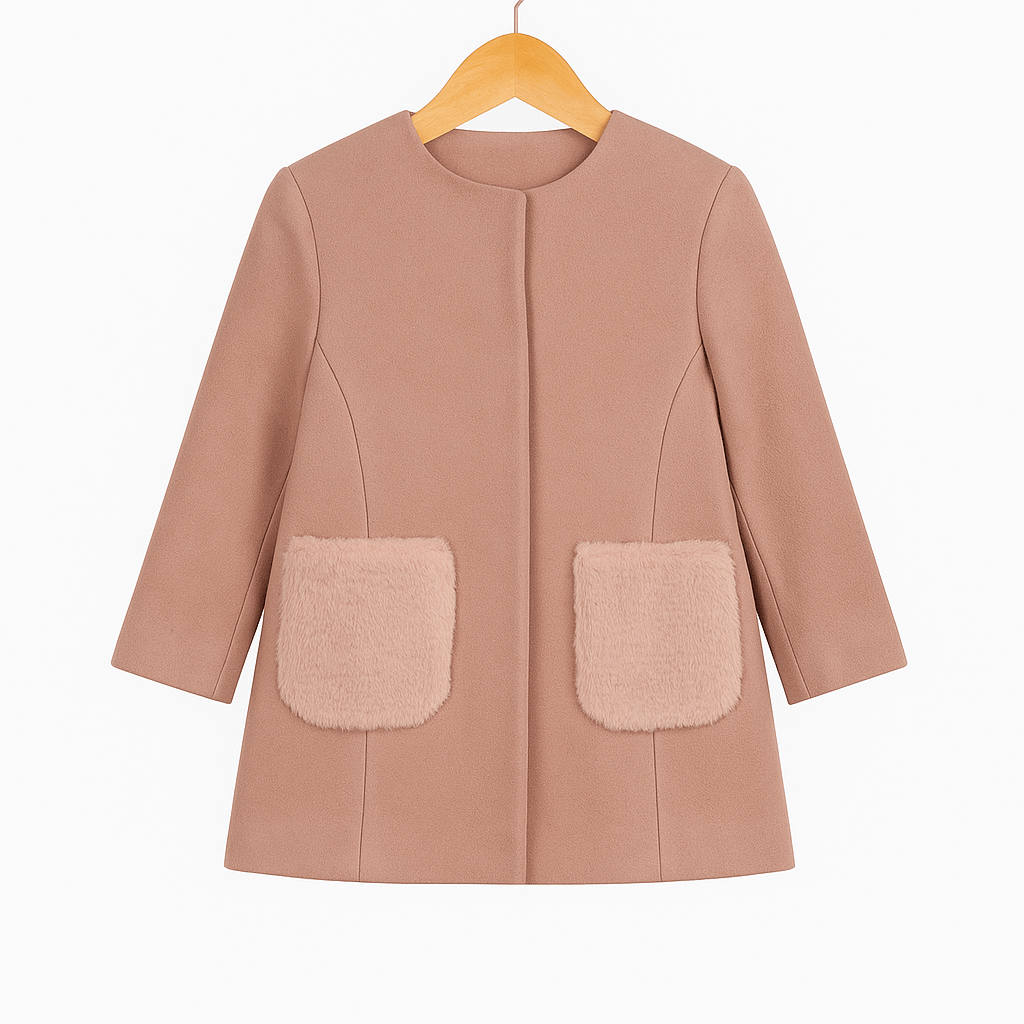 Cappotto rosa antico dalla linea pulita ed elegante, impreziosito da due tasche frontali in morbida ecopelliccia che donano texture e carattere al design. Presenta una silhouette dritta con taglio essenziale e chiusura nascosta, per un effetto raffinato e minimalista. Un modello versatile e moderno, perfetto per completare con stile ogni look invernale.