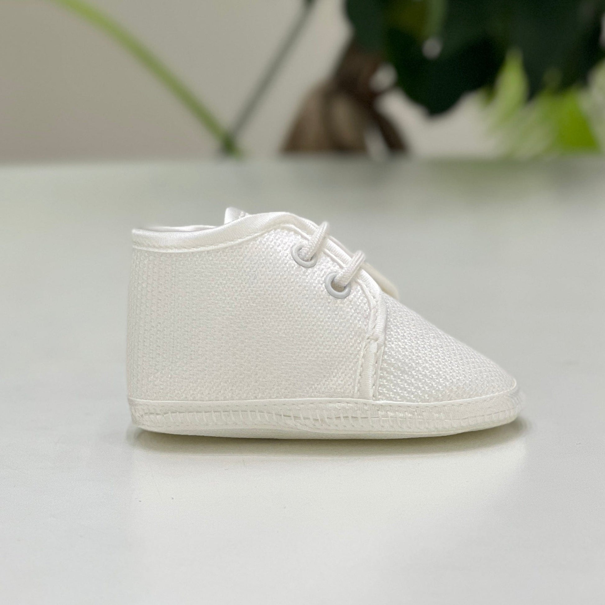 Scarpina battesimale da culla per neonato, un accessorio elegante e studiato nei minimi dettagli per completare il look del tuo piccolo nel giorno del suo battesimo.