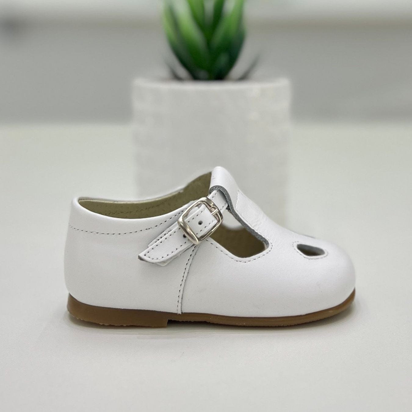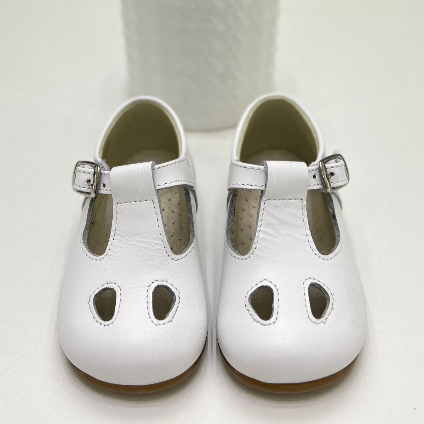 Inglesina con occhiello bimbo in pelle, cinturino regolabile, plantare anatomico e suola antiscivolo.