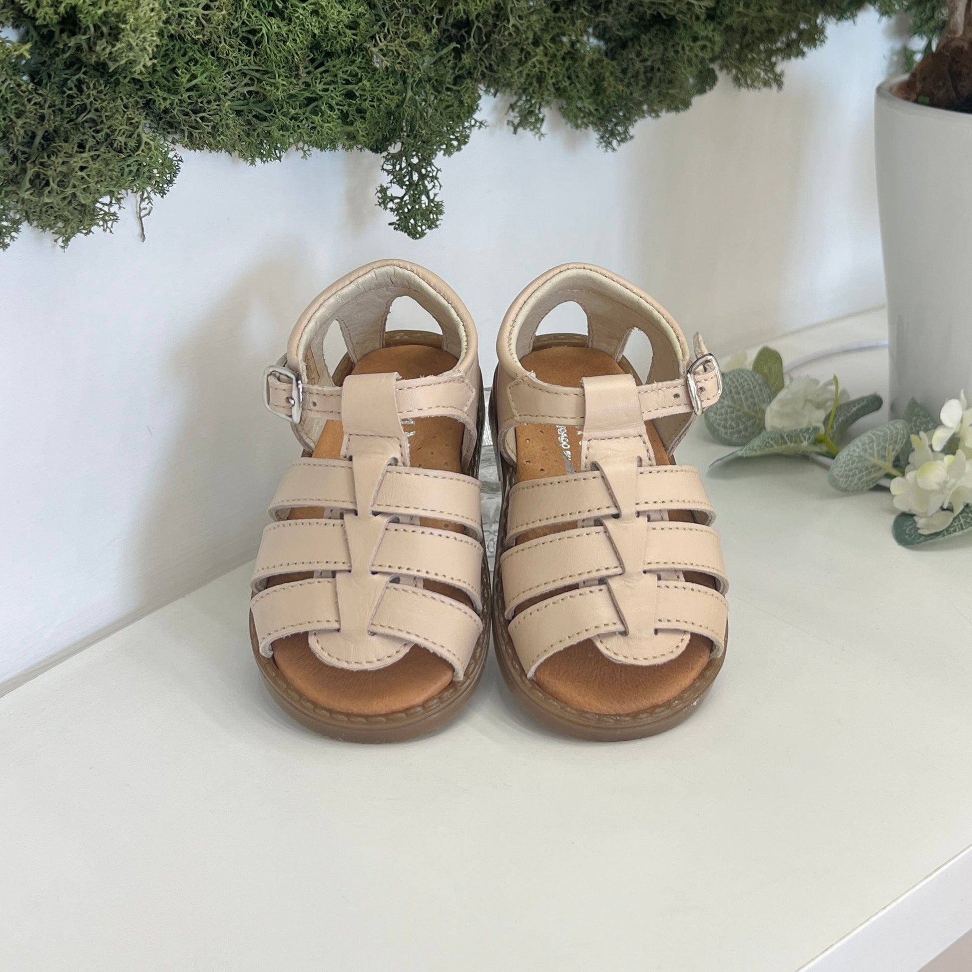 Sandalo ragnetto bimbo in pelle con fibbia, plantare anatomico e suola antiscivolo.