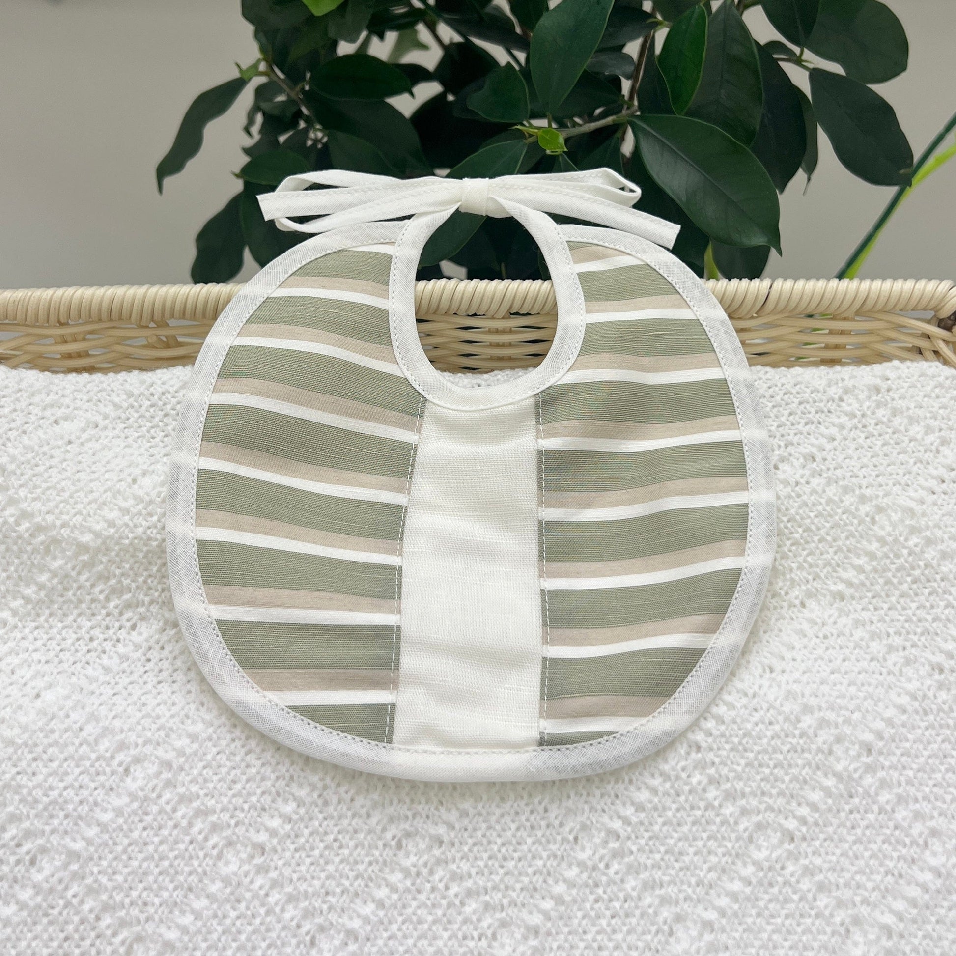 Una bavetta elegante e delicata, realizzata in morbido misto lino con una raffinata fantasia a righe. Perfetta per aggiungere un tocco di stile anche ai momenti più quotidiani, unendo praticità e raffinatezza.