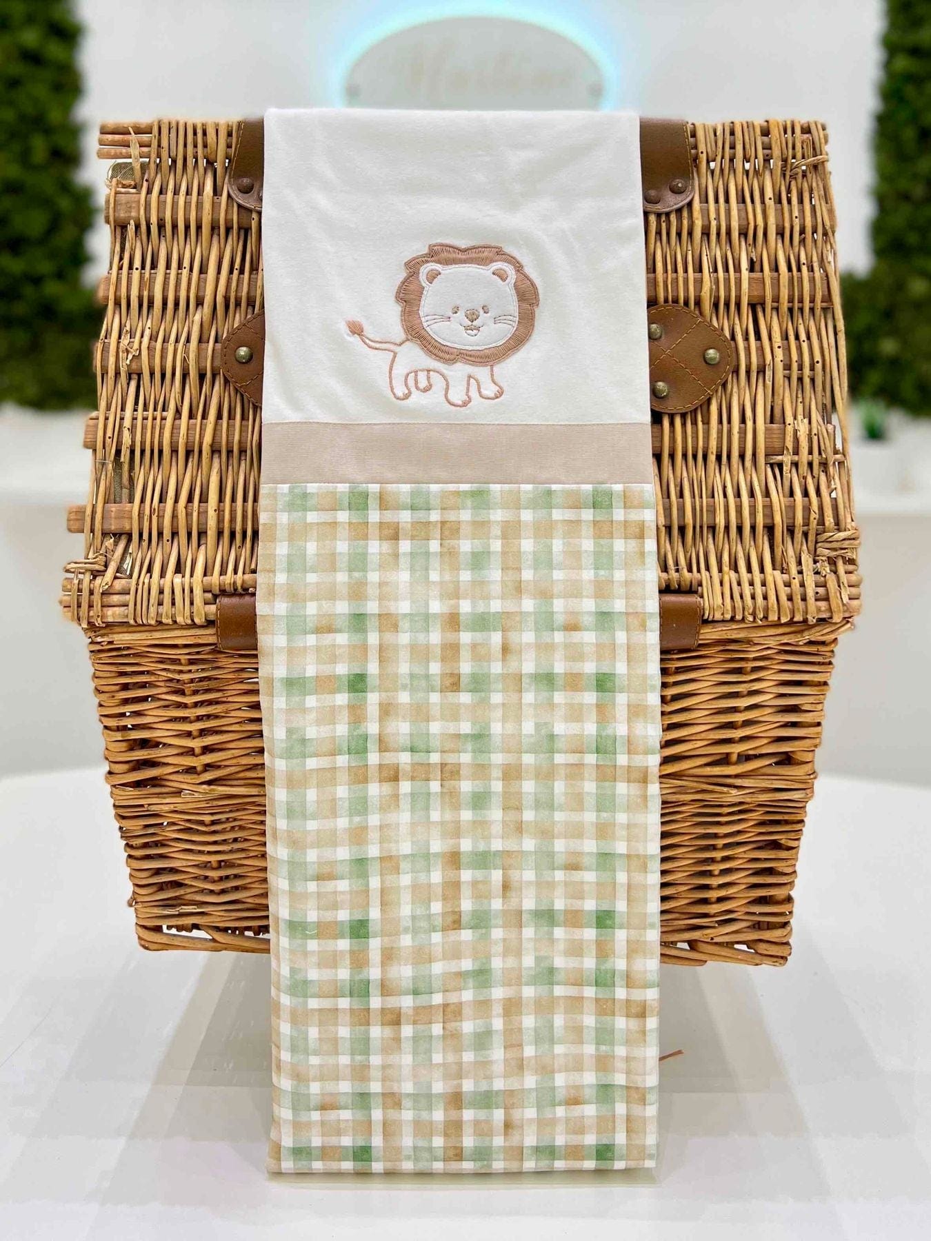 Coperta neonato con fantasia vichy e leoncino stampato.