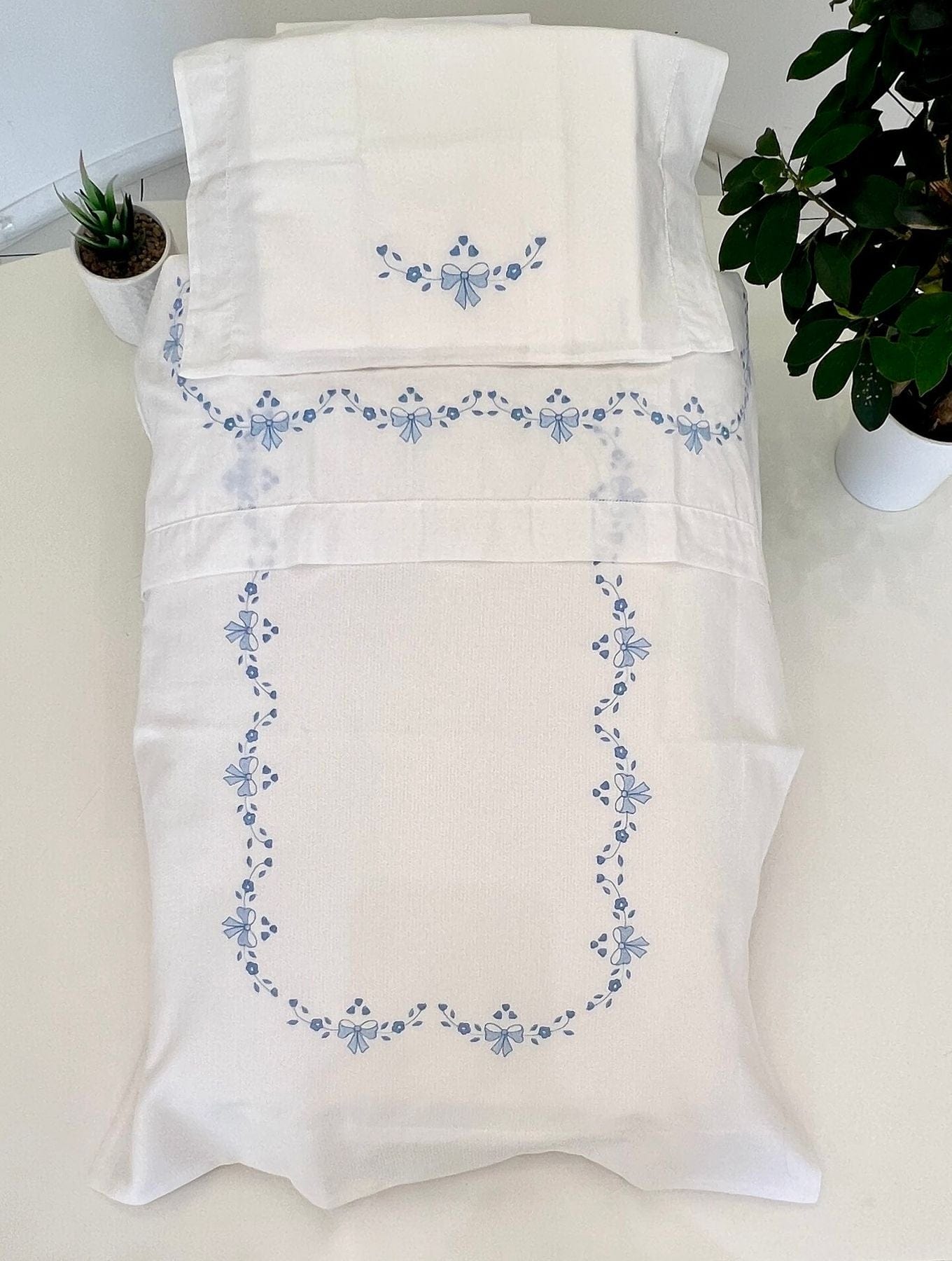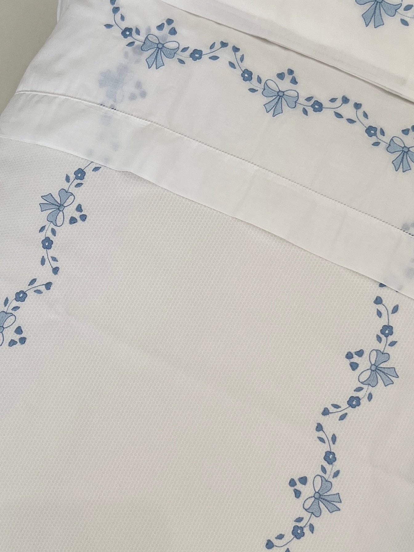 Coperta in piquet di cotone con ricami a macchina e tasca per imbottitura.