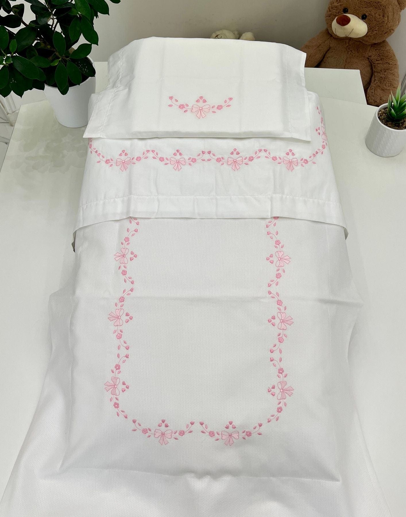 Coperta in piquet di cotone con ricami a macchina e tasca per imbottitura.