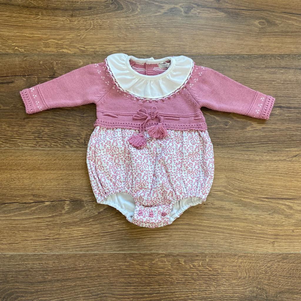 Pagliaccetto con colletto con rouches e fantasia floreale.