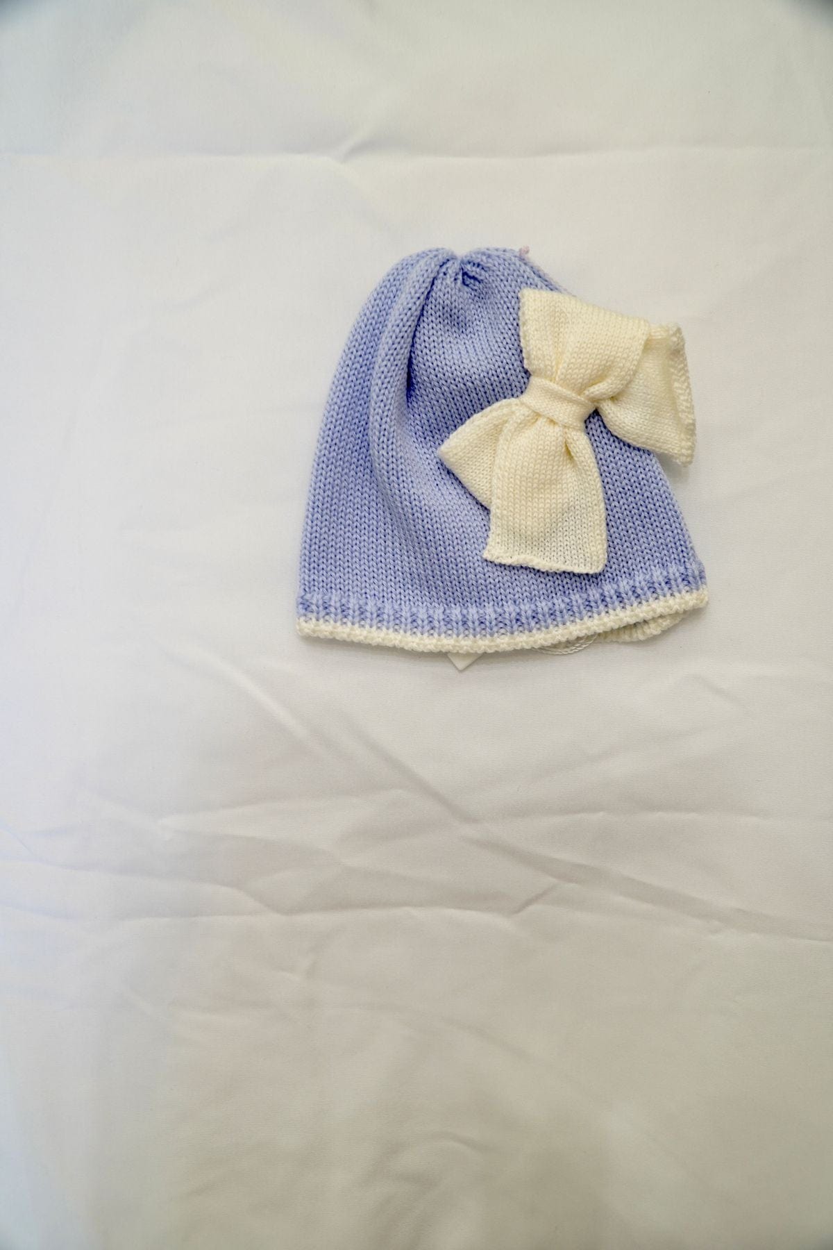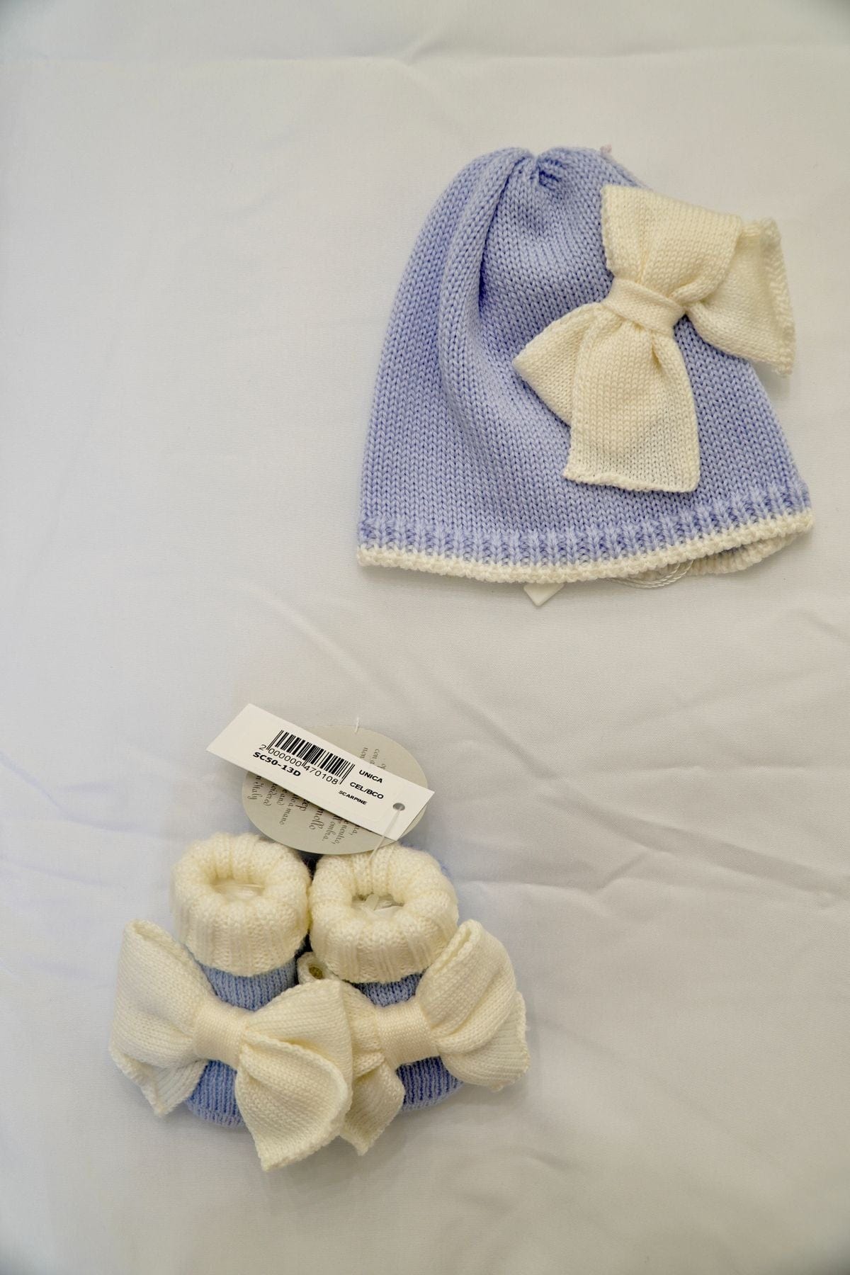 Coordinato di scarpette e cappellino in celeste 100% pura lana