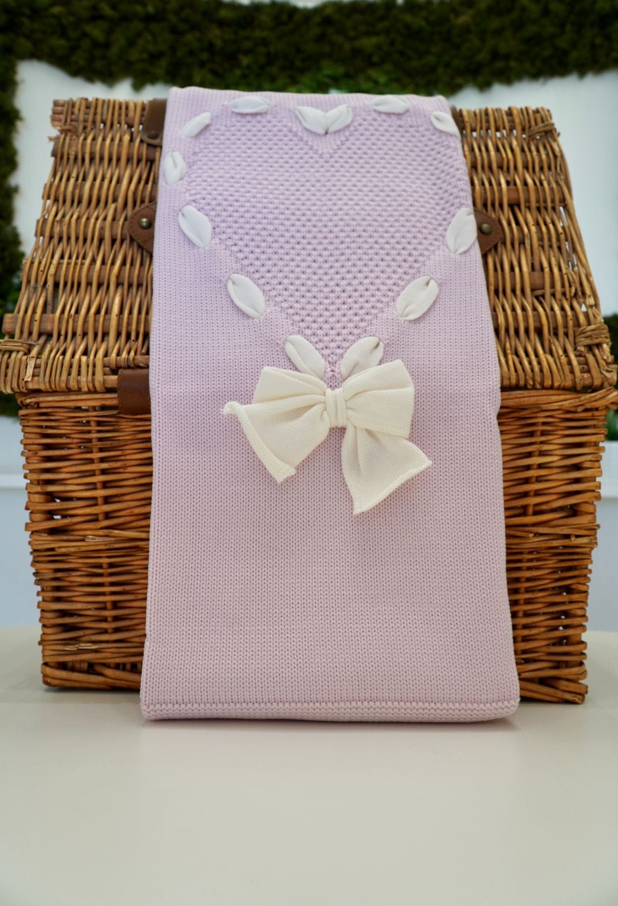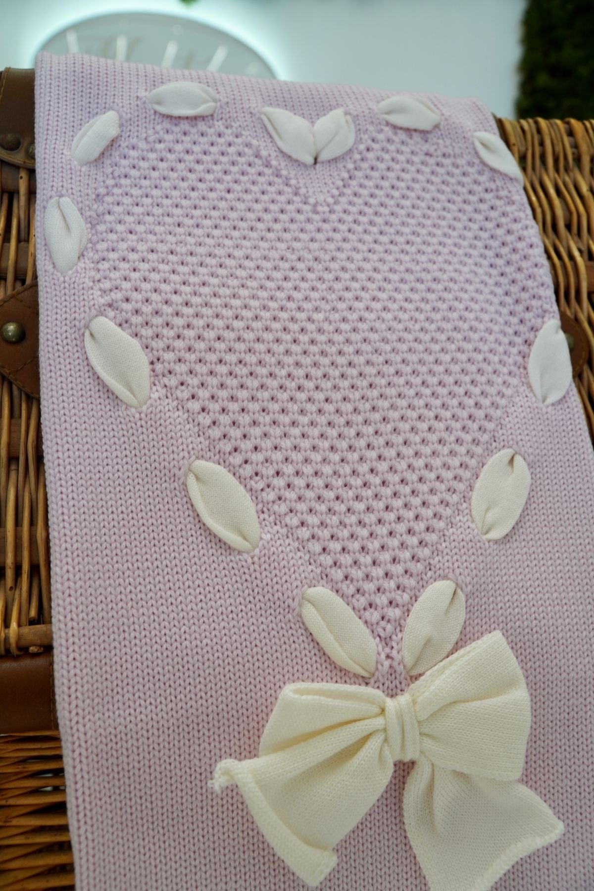 Copertina in rosa 100% pura lana con cuore e fiocco
