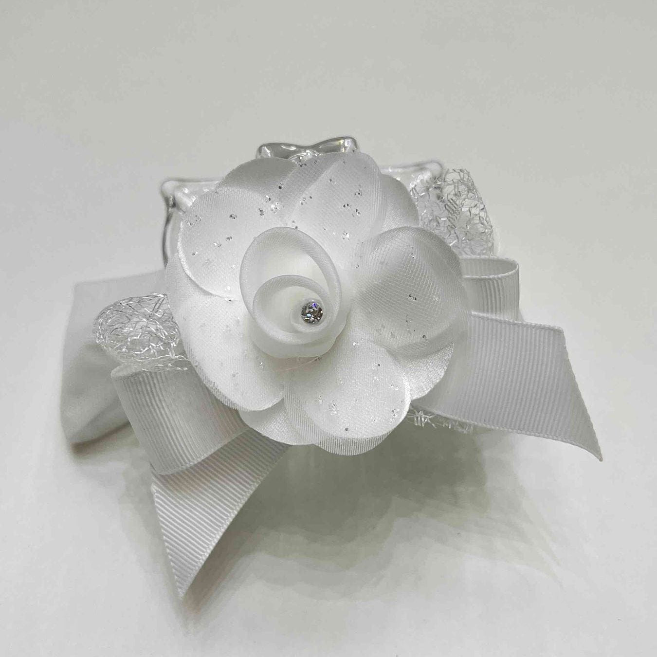 Fascia battesimale neonata elasticizzata con dettaglio floreale.