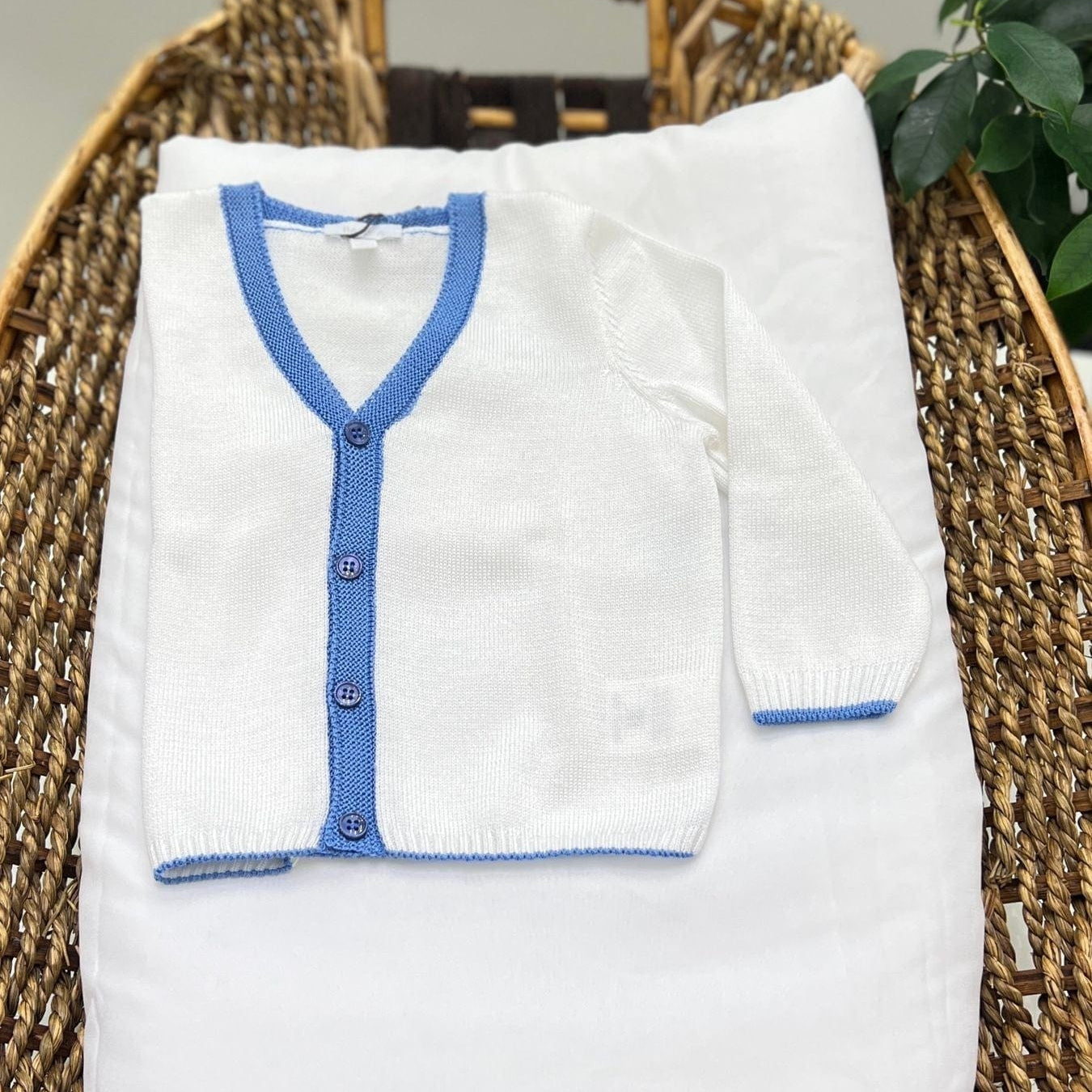 Cardigan bianco in filo di cotone con bordi a contrasto.