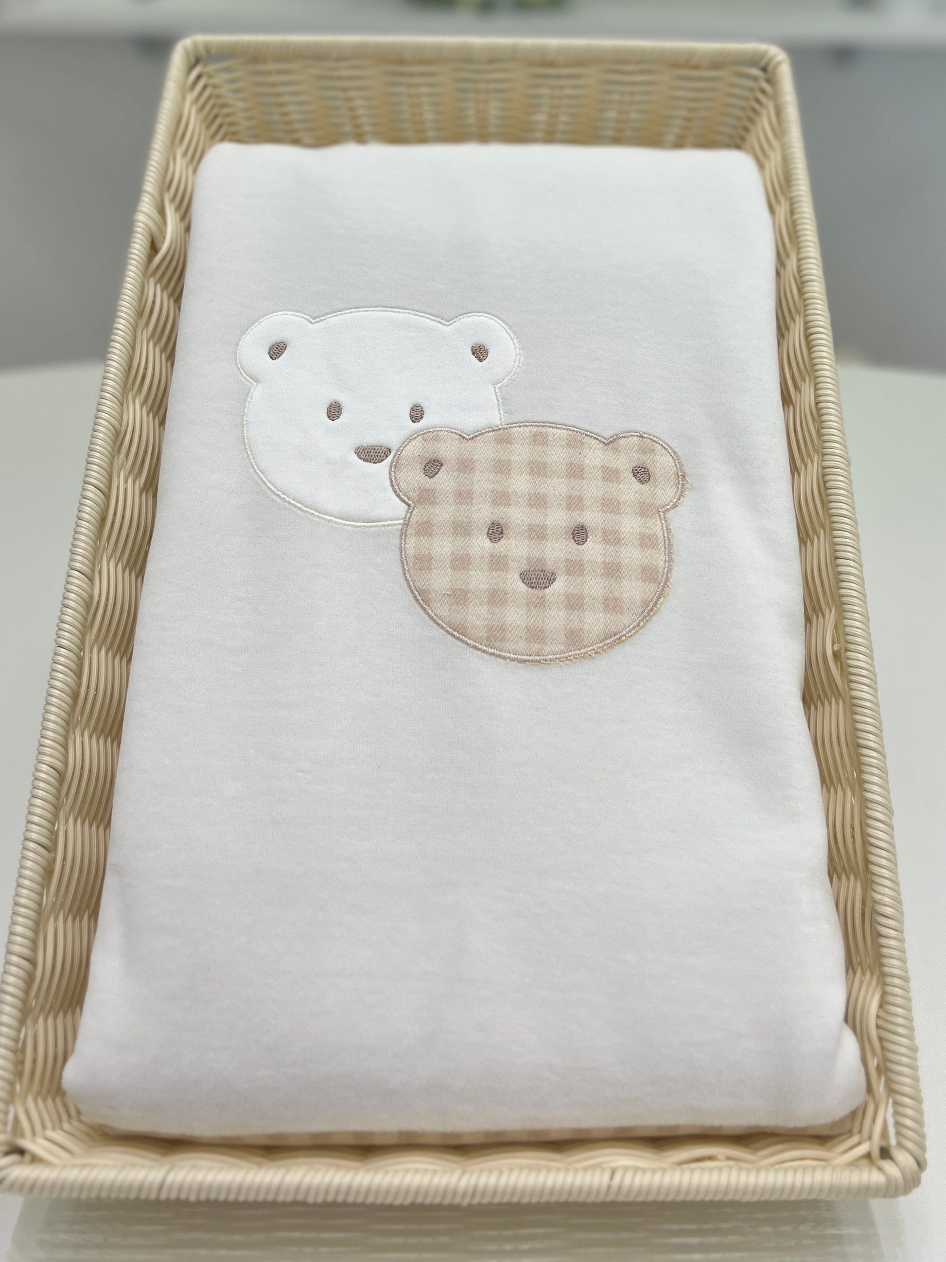 Coperta soffice e avvolgente, realizzata in ciniglia color panna con un fondo sul retro in beige. Al centro, due teneri orsetti decorativi aggiungono un tocco di dolcezza, rendendola perfetta per creare un'atmosfera accogliente e delicata.