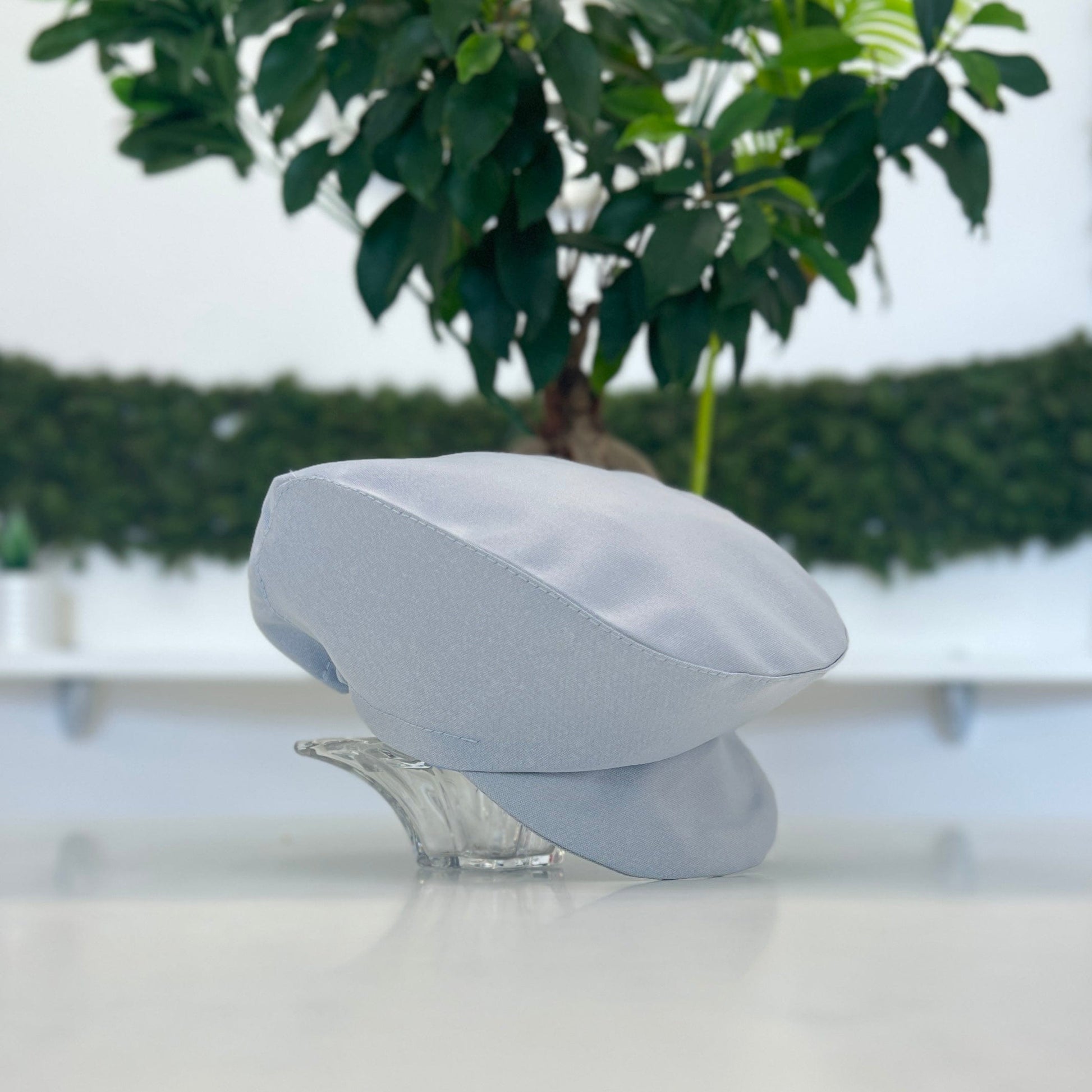 Coppola elegante per neonato in tessuto liscia, dal design sofisticato e chic. Realizzata con tessuto di alta qualità, aggiunge un tocco raffinato e distintivo a qualsiasi outfit da battesimo.