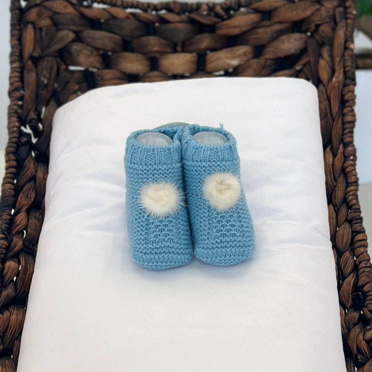 Scarpette da culla realizzate in lana sintetica soffice, offrono una vestibilità comoda e sicura. Come decorazione, hanno adorabili pompon sulla parte superiore, aggiungendo un tocco di allegria.