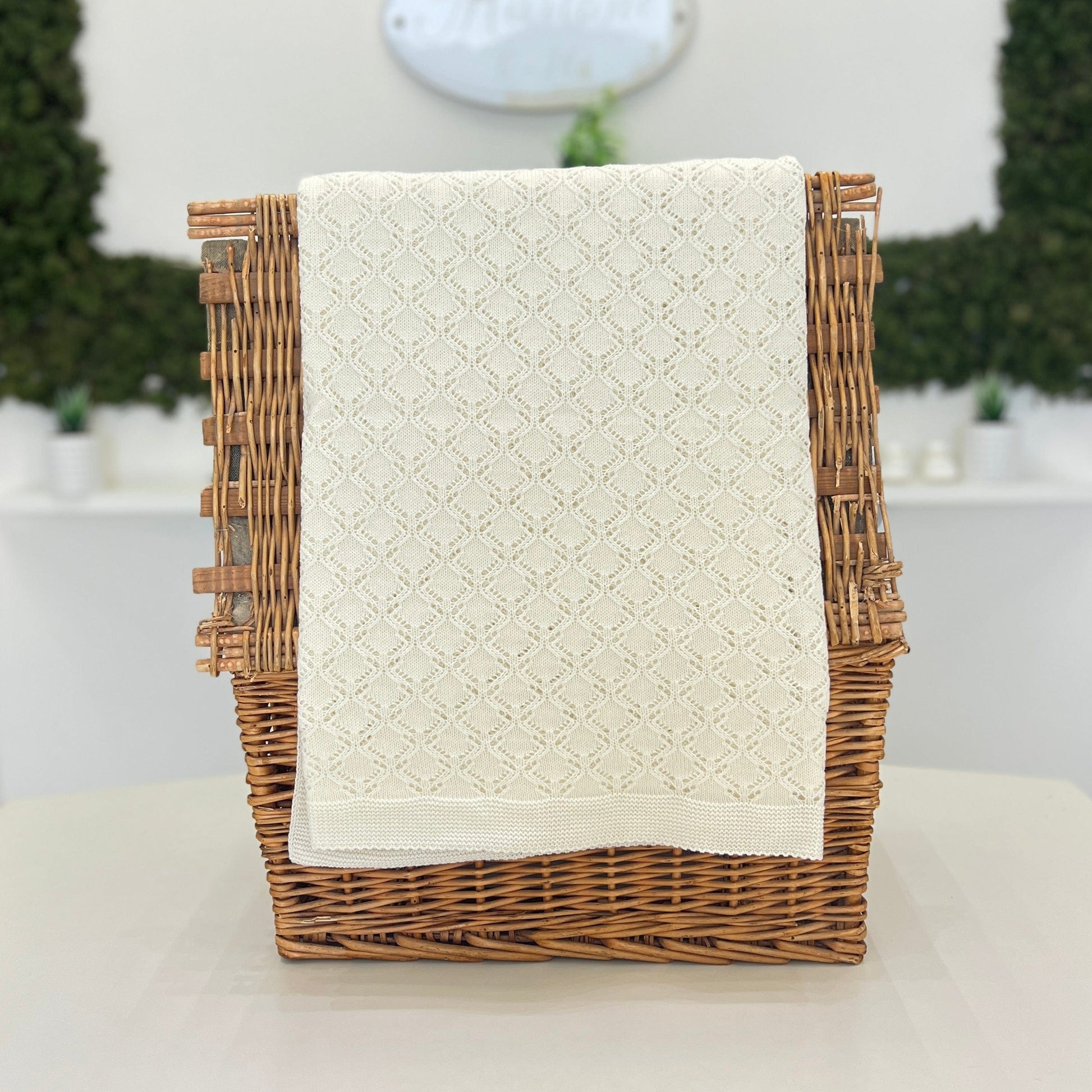 Scialle in filo di cotone traforato con lavorazione a rombi.