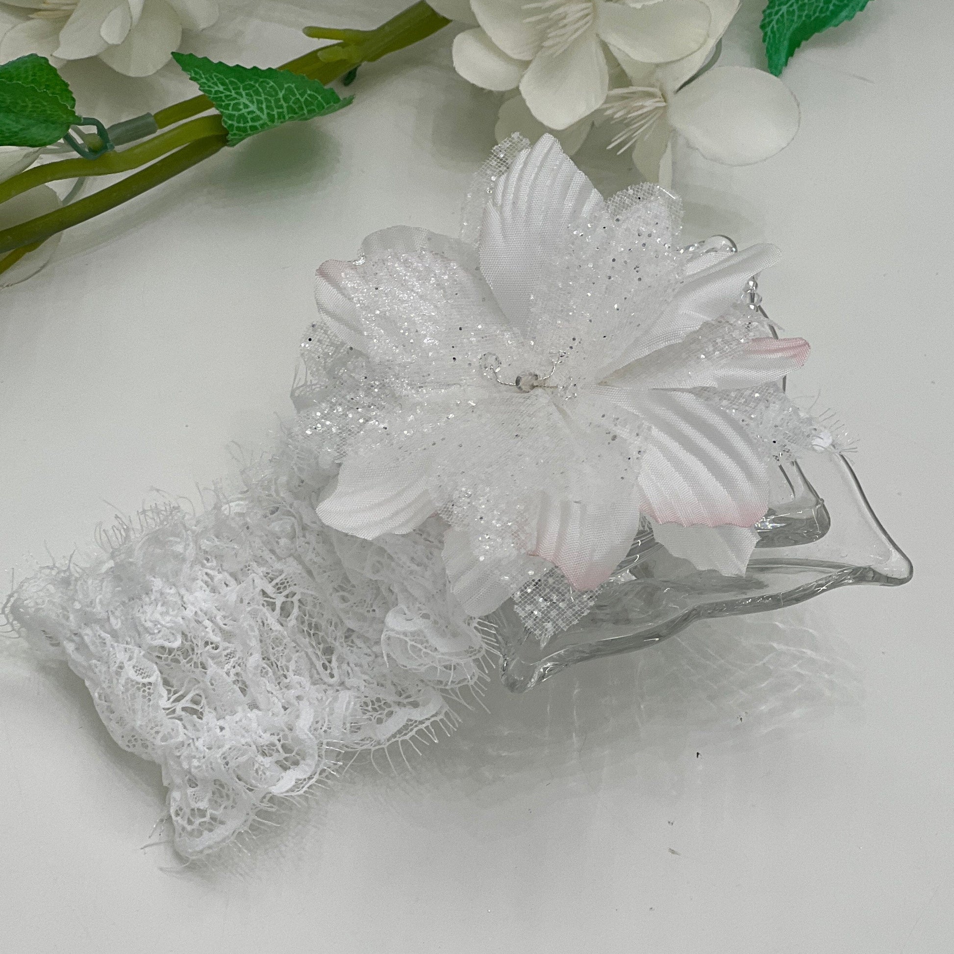Fascia in pizzo elasticizzato con fiore glitterato e dettaglio gioiello
