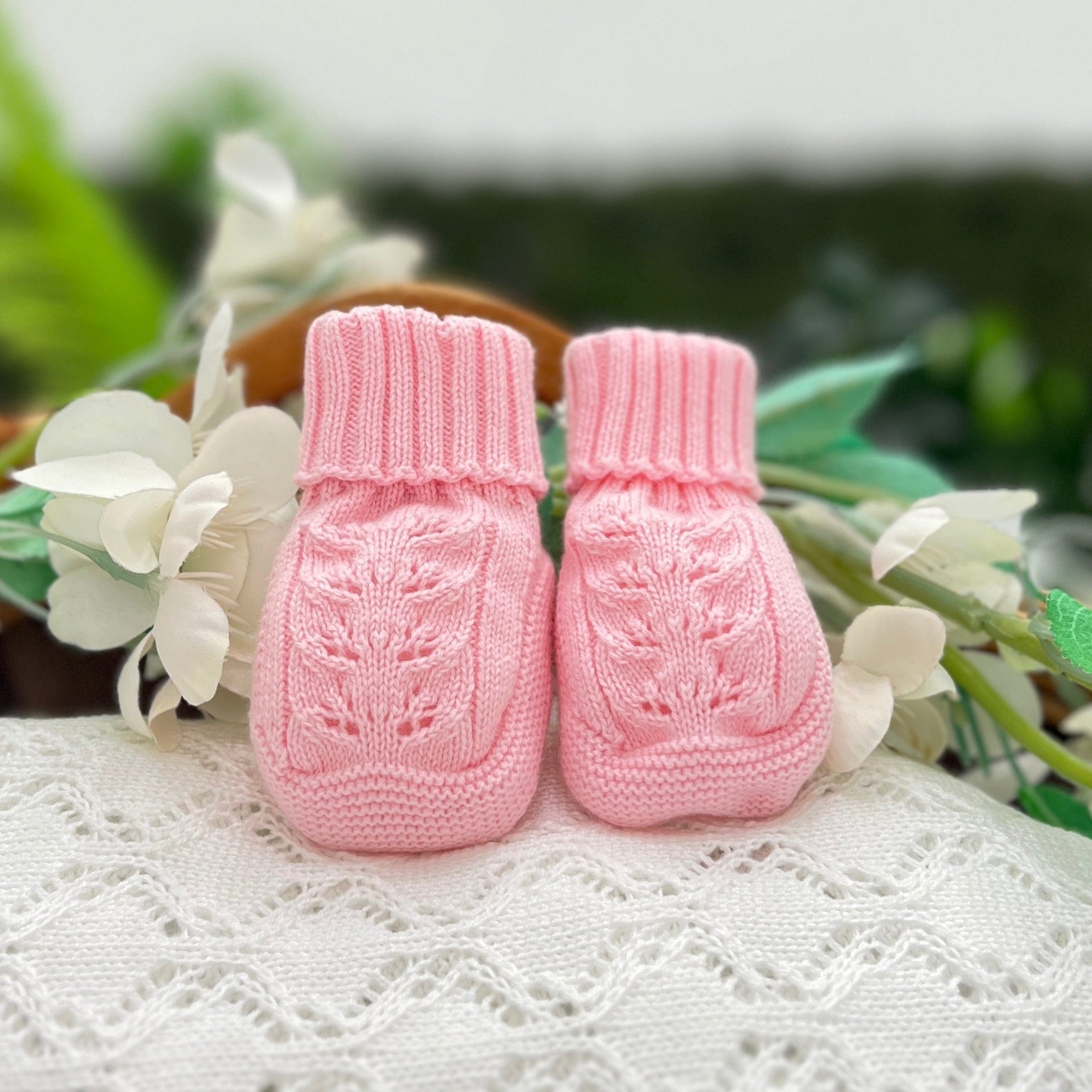Babbucce in filo di cotone, soffici e traspiranti, ideali per coccolare i piedini del neonato con dolcezza.