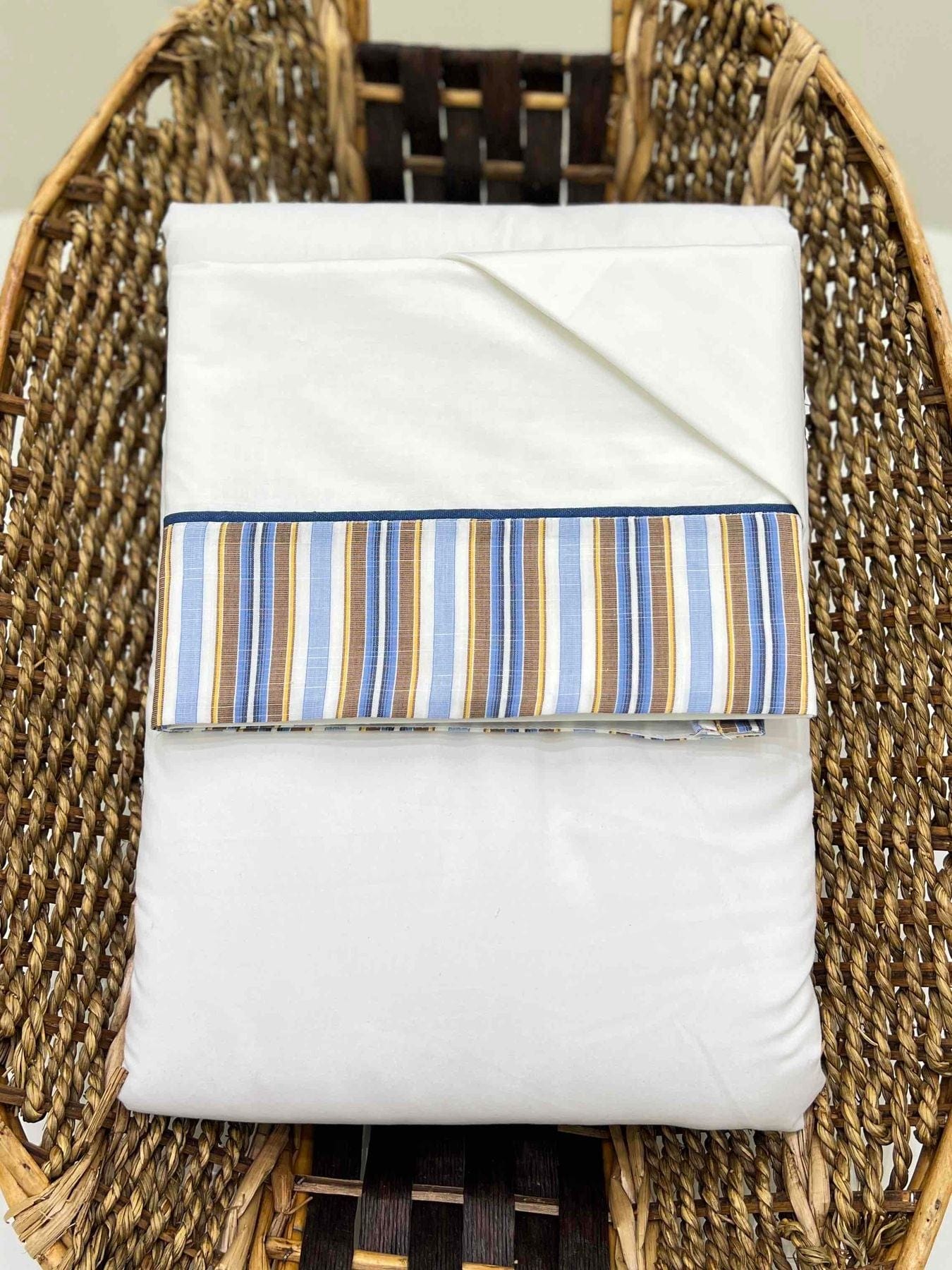 Lenzuolino in cotone bianco e trama a righe.