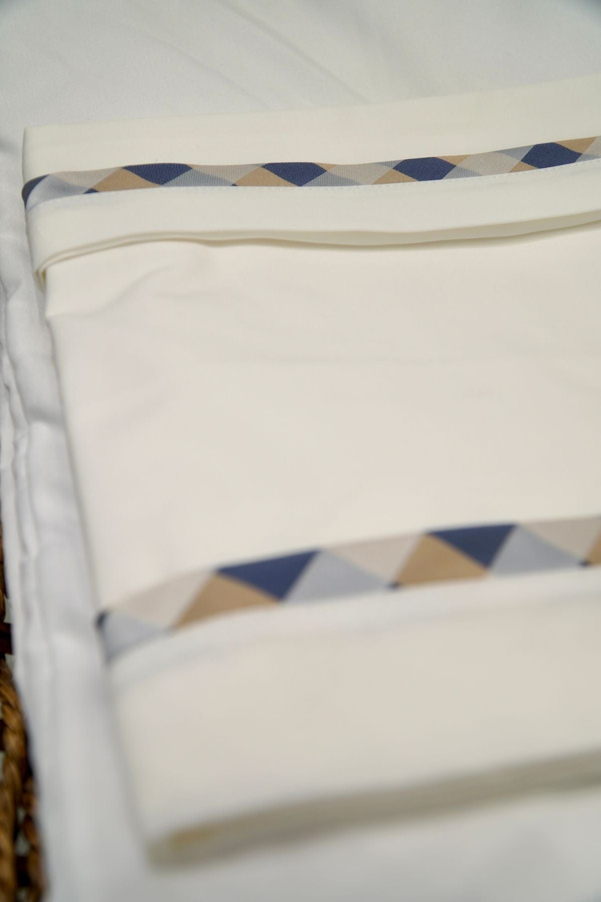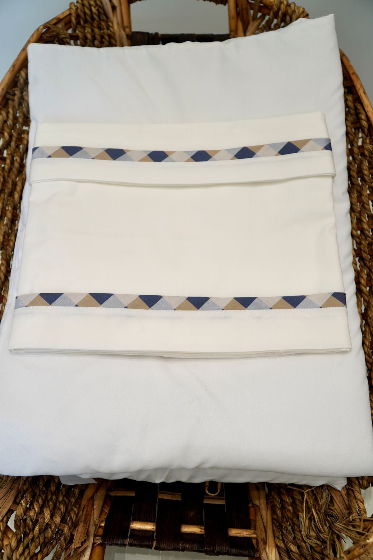 Lenzuolino in panna con fascia beige e blu