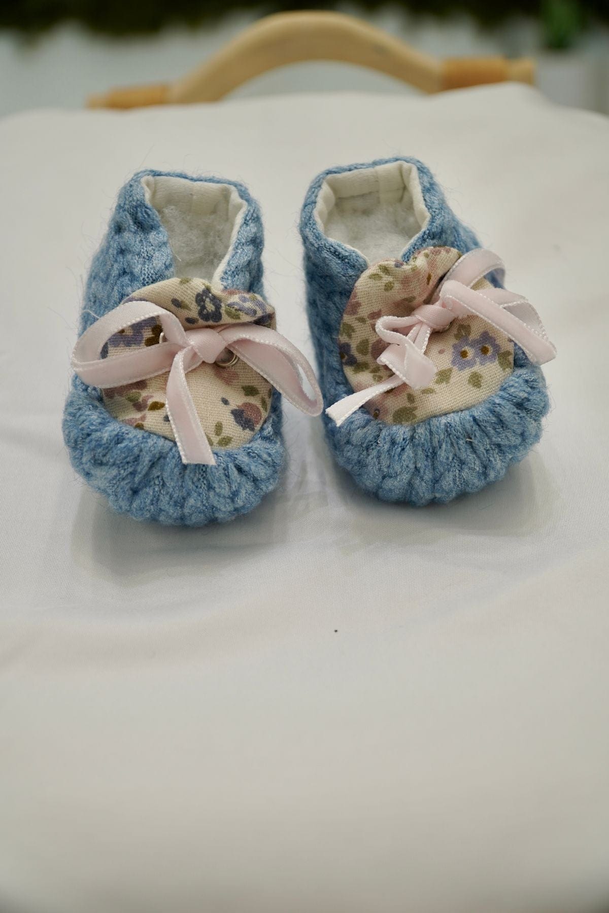 Scarpette nascita celeste con fiocco rosa