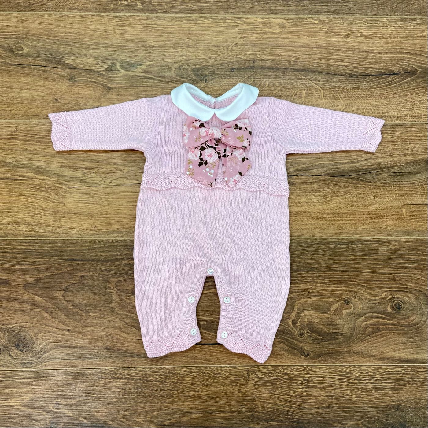 Tutina di lana neonata con fiocco fantasia fiori