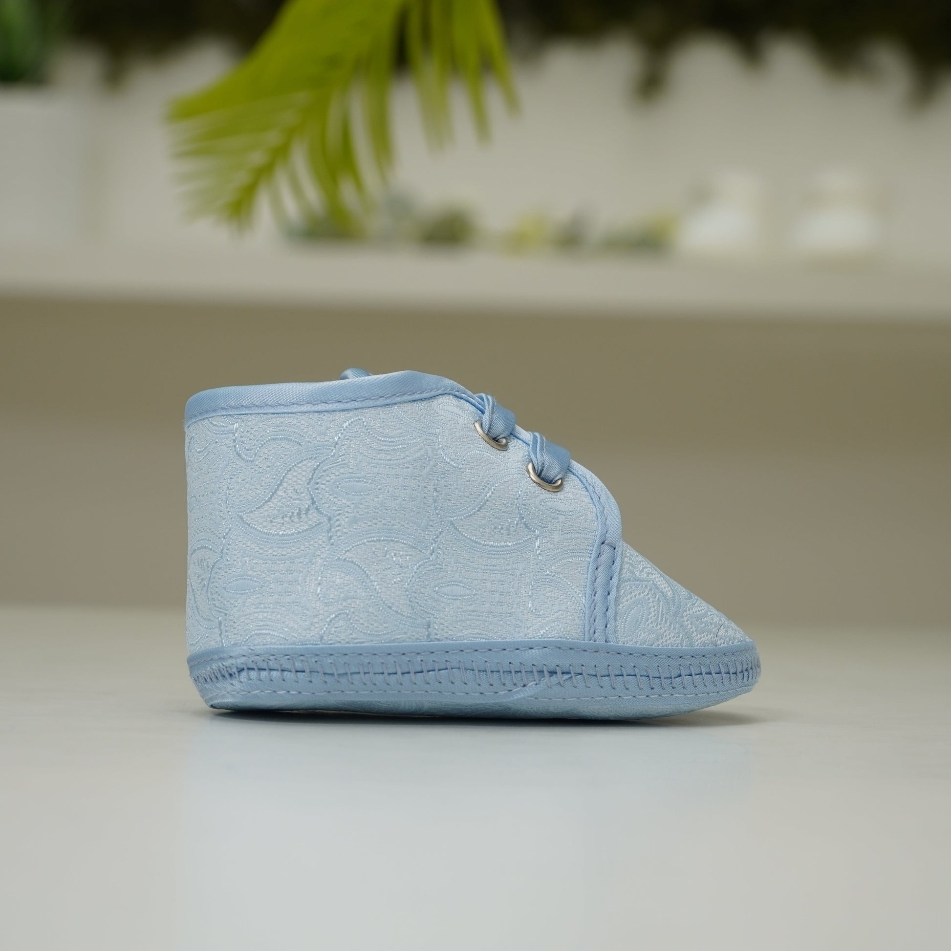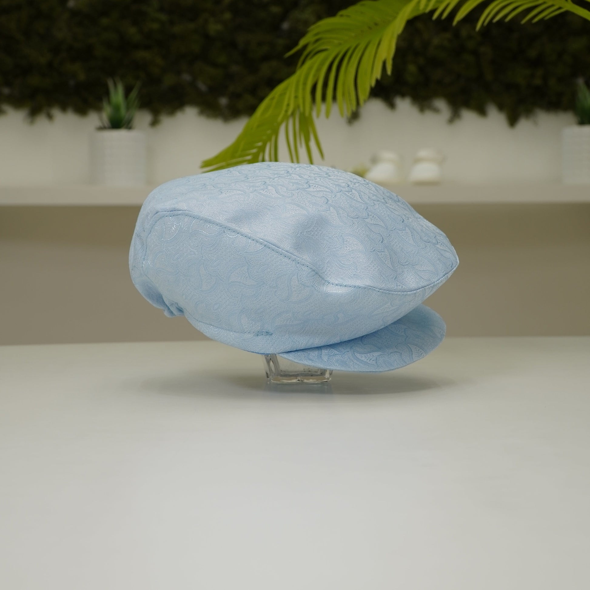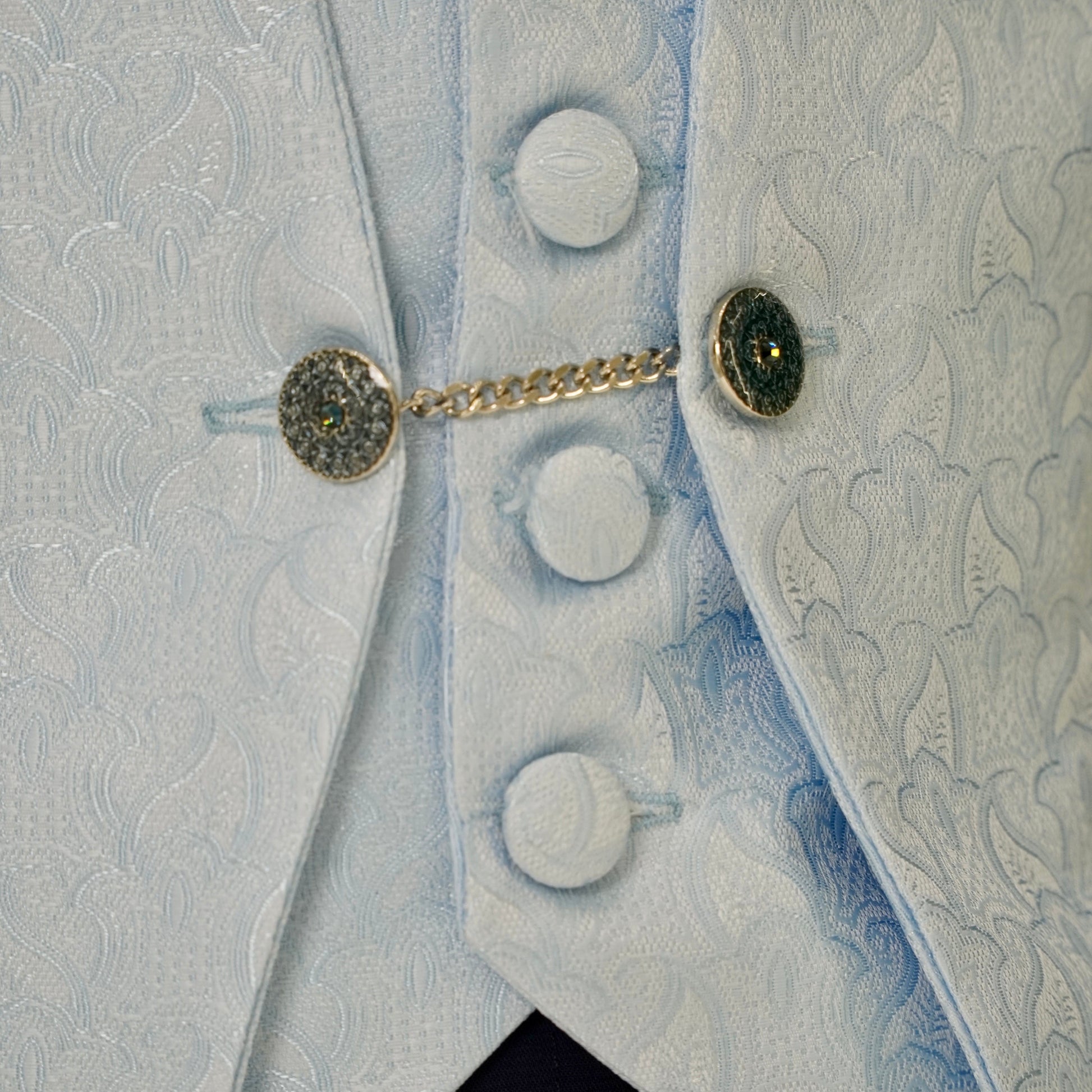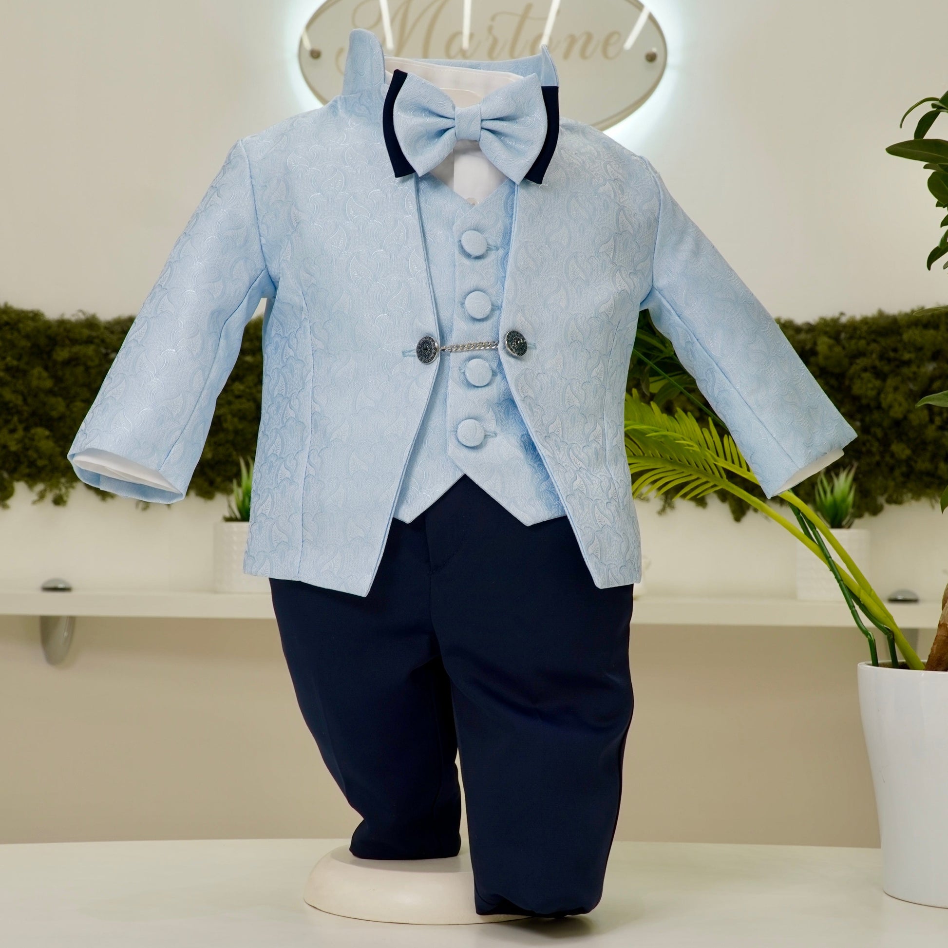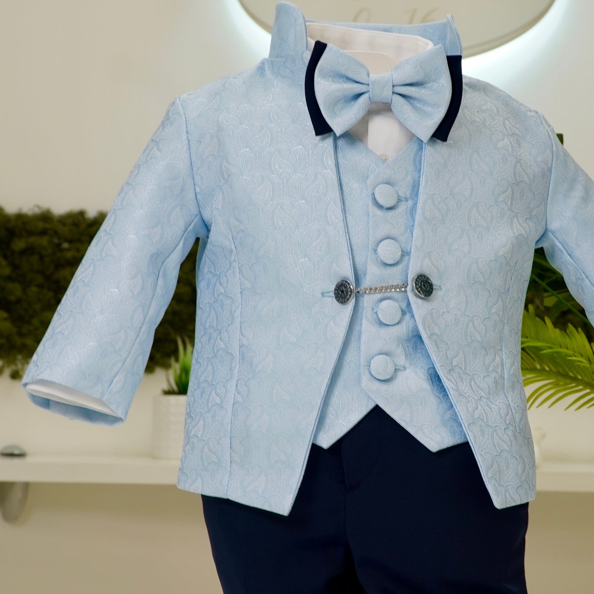 Abito elegante battesimale in damascato nei toni del blu e celeste.