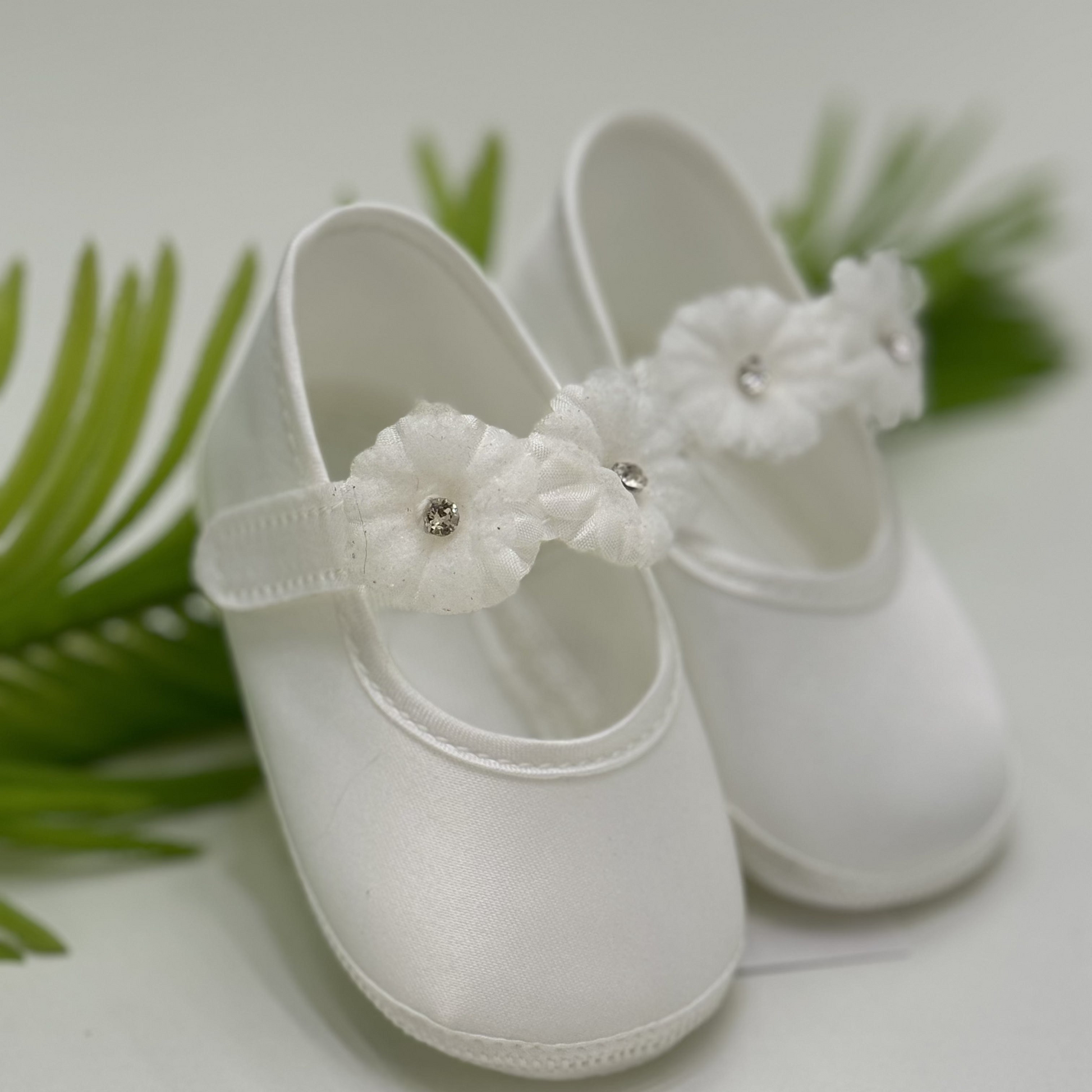 Il Luxury Dress Gaia è realizzato in delicato pizzo con bordi a punta. Il corpetto in mikado ha un design elegante, con maniche a sbuffo e un dolce colletto. In vita, una cintura si allaccia con un fiocco sul retro, mentre davanti spicca una raffinata applicazione floreale bianca. Il look è completato da manicotti abbinati e culotte copri pannolino, per un insieme raffinato e confortevole, perfetto per l’occasione. Questo abito è pensato per rendere il battesimo un momento ancor più speciale, con dettagli curati e materiali di alta qualità.
