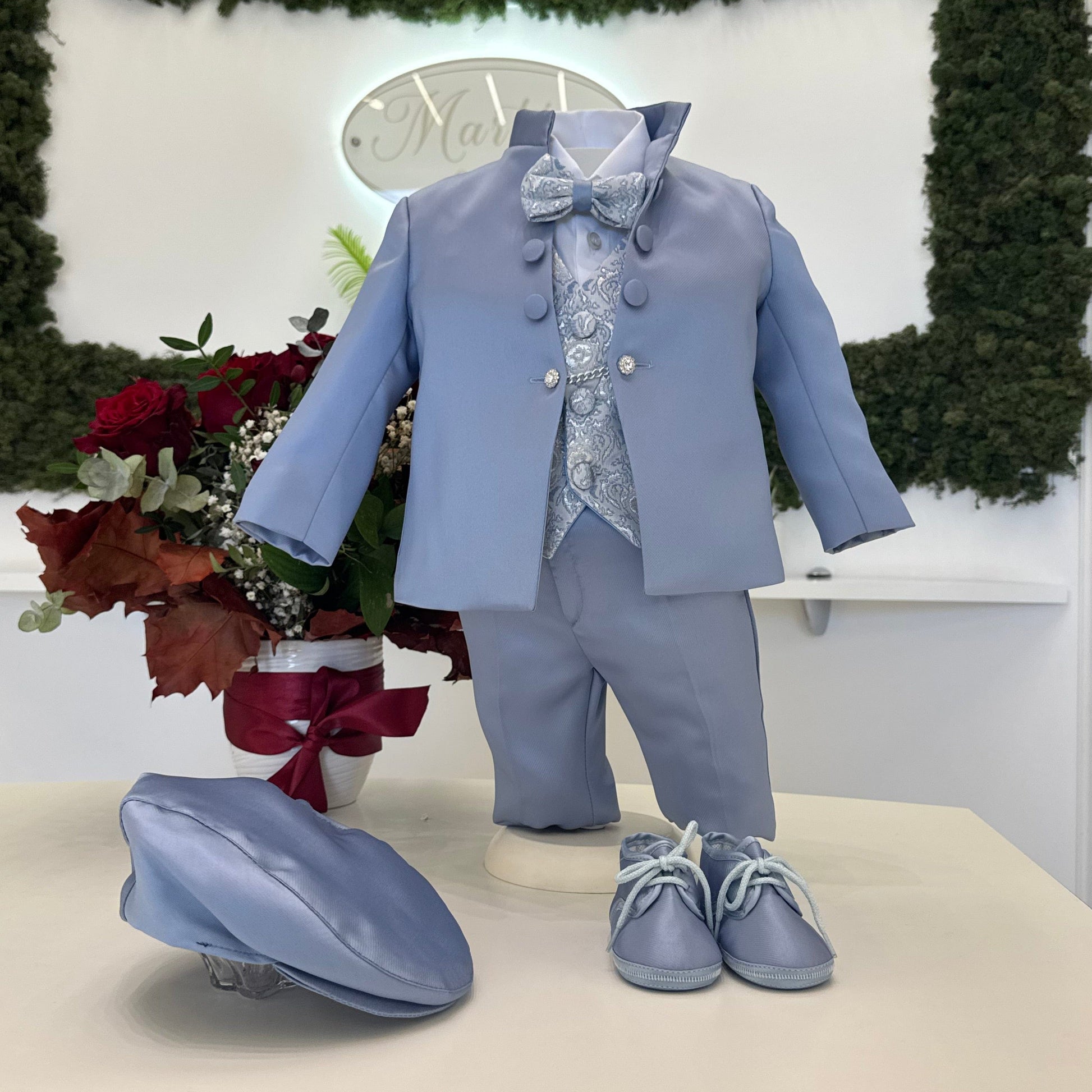 Coppola elegante per neonato, dal design sofisticato e chic. Realizzata con tessuto di alta qualità, aggiunge un tocco raffinato e distintivo a qualsiasi outfit da battesimo.