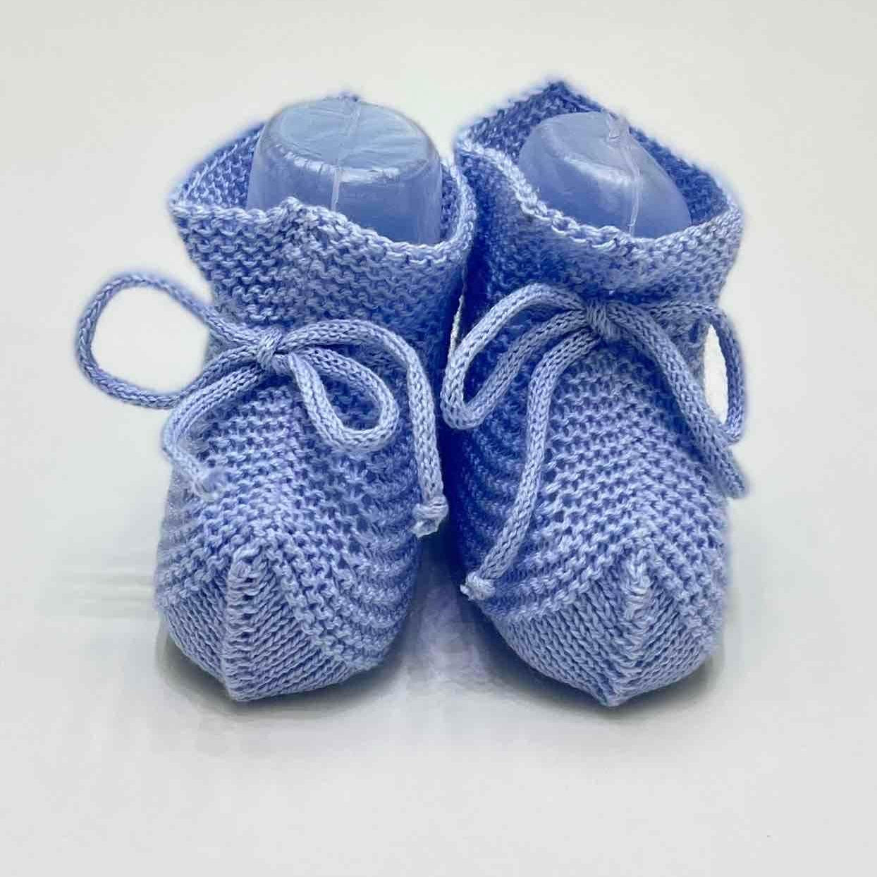 Scarpette da culla neonato in filo di cotone e cordoncino.