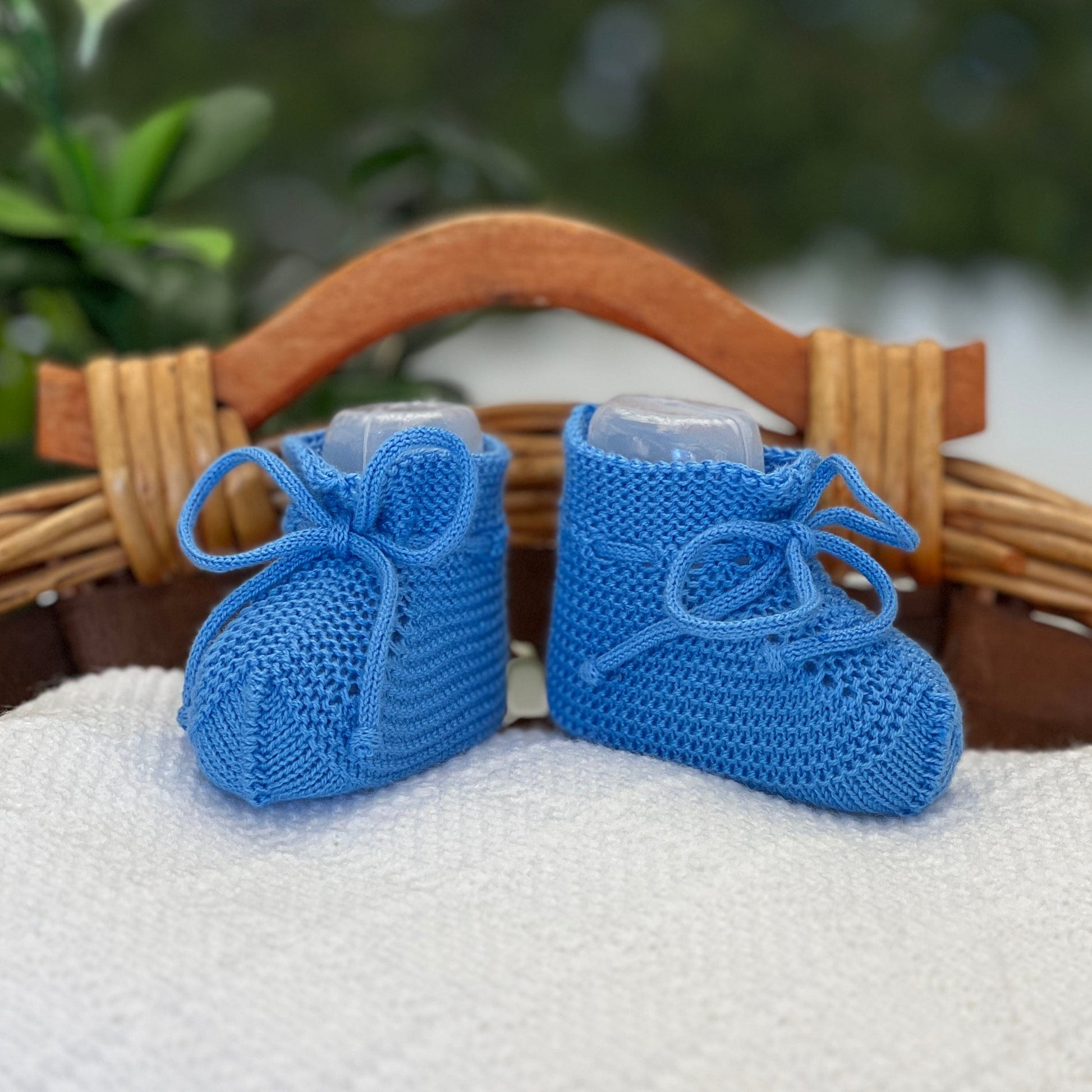 Scarpina neonato in filo di cotone con intrecci e cordoncino.