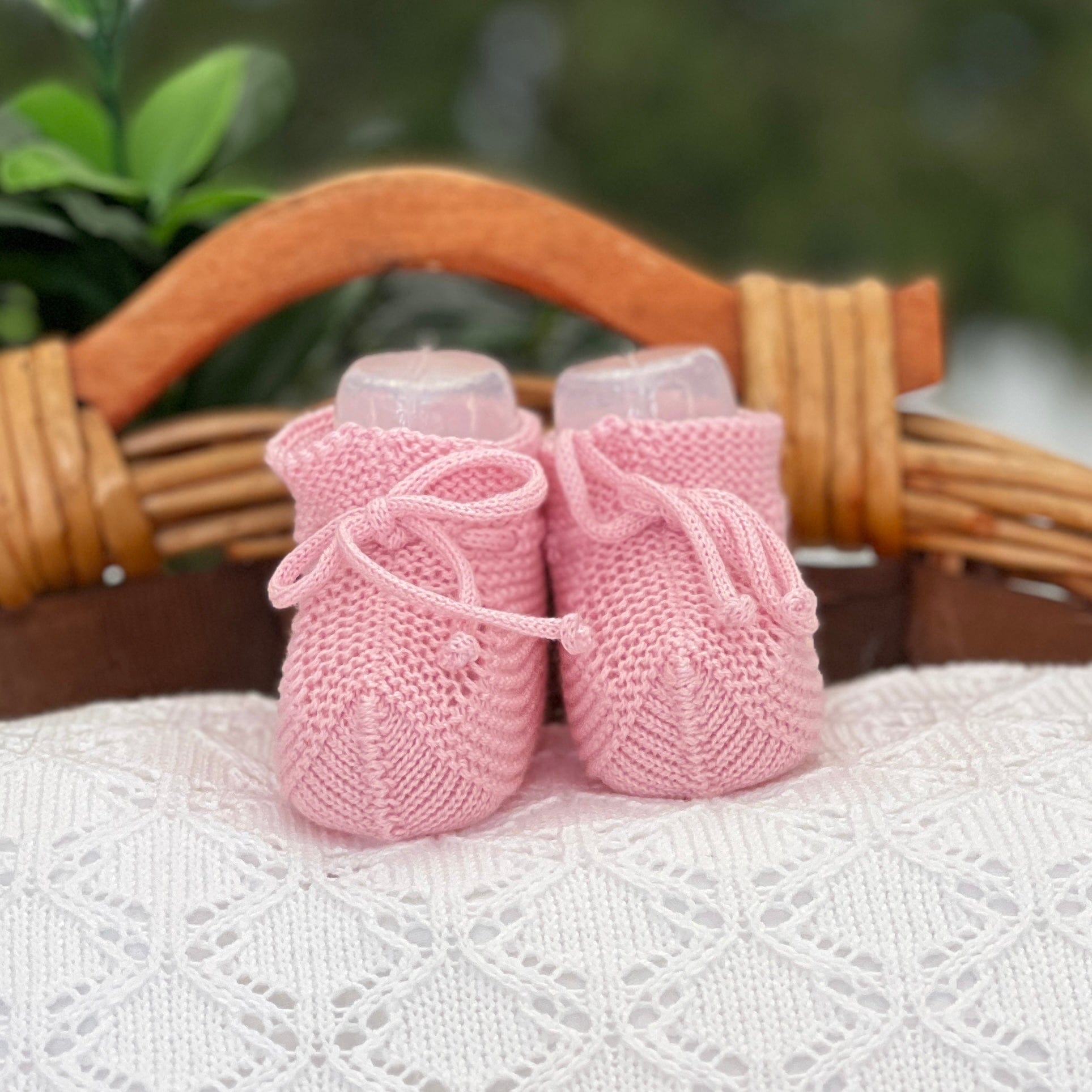 Scarpina neonato/a in filo di cotone con intrecci e cordoncino