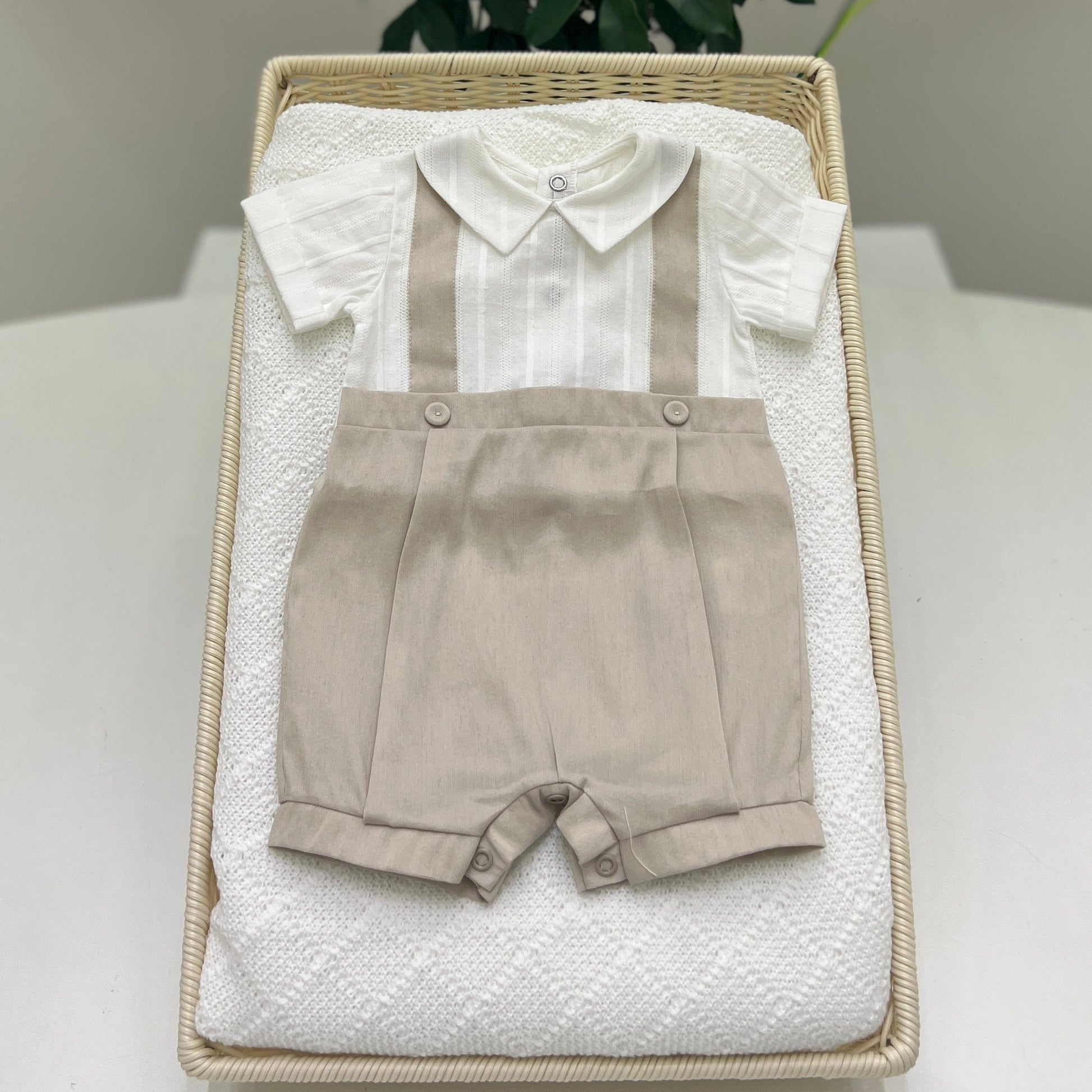 Pagliaccetto in misto lino con fine bretelle, ideale per garantire comfort e freschezza al tuo neonato. Il tessuto leggero e traspirante lo rende perfetto per ogni occasione, unendo eleganza e praticità.