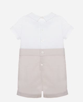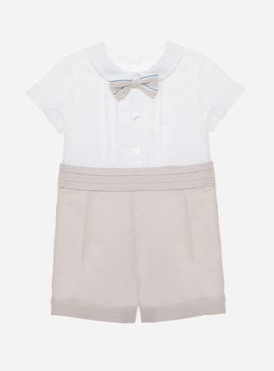 Pagliaccetto bimbo in tessuto Oxford, finta fascia smoking in vita e papillon abbinato.